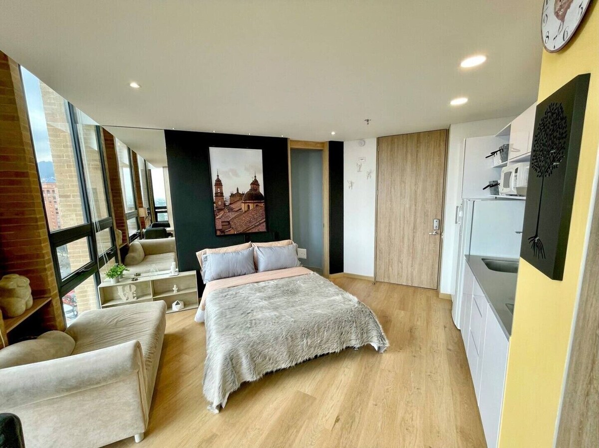 Your Bogotá adventure begins at this 1-bedroom apartment. Step inside and be greeted by a fantastic space that will make you feel right at home. The bedroom features a wonderful full bed, ensuring a restful night's sleep for all guests. The bathroom offers excellent amenities, including a hair dryer and a refreshing shower. As you explore the property, you'll find additional space to relax and unwind. With coin laundry, an iron, and WiFi available, your stay will be convenient and comfortable. Enjoy your time in Bogotá at our charming apartment.
