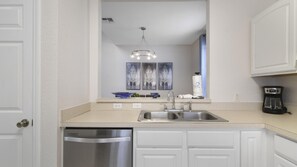 When we first arrived, we were excited about the space that the house provided. The bedrooms were spacious, the living space was comfortable, the gameroom was a great space to game and hangout in. We had 7 of us staying so the kitchen table was nice to use for meals. We had a brief issue when we opened the back door to the patio/pool area and the alarm went off. We thought it was the alarm system but turned out to be an alarm when the door opens and you have to push a button that was hidden behind the curtains. Fortunately, I messaged the owner who quickly replied and told us what to do. We found that annoying everytime we opened the door but we also understood it from a safety standpoint. There are two large water stains on the ceilings: one in the kitchen and one in the gameroom. I informed the owner that they were pretty bad and needed to be tended to. The toilet in one of the master bedrooms on the main floor continuously ran. We weren't there that much so I just informed the owner it needed to be looked at after we left. The pool and hot tub were amazing. The other property amenities (pool, waterslides, etc.) were also really nice. We ate at the snack area which took forever to get our food but it was good once we got the food. Overall it was a great stay.