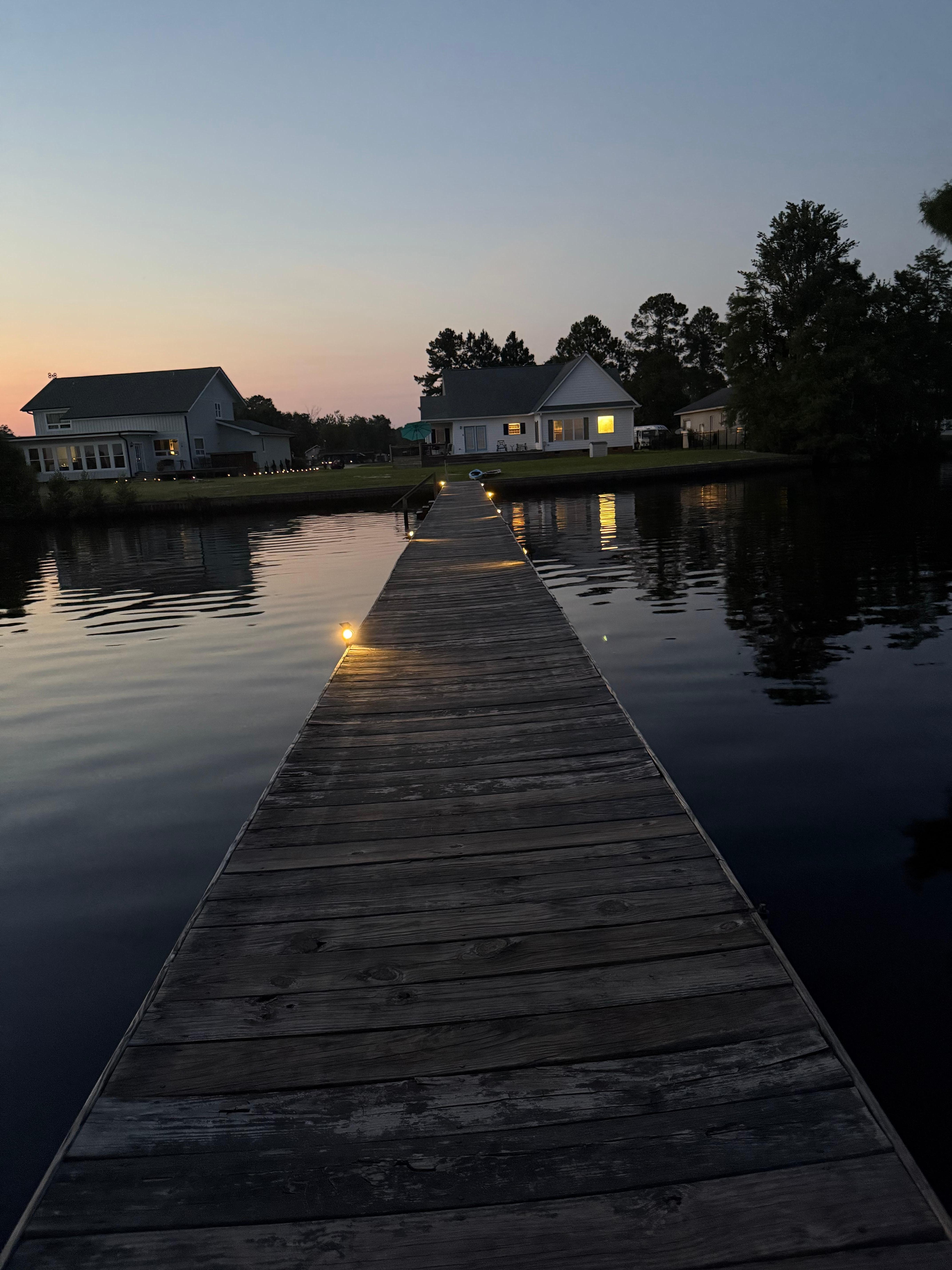 Beautiful house on Bay Tree Lake, 2100sf with 4BR/3BA (including Bunkroom that sleeps 6.) House sleeps a total of 12. Your own Deck, Private Pier, and Boat House. Vaulted ceiling in Family Room, Kitchen with granite counters, SS Appliances, eat at bar and dining room table for 8. Master Bedroom Downstairs with King bed, master bath with standing tile shower and garden tub. Laundry closet with w/d, 2 additional bedrooms downstairs, One bedroom has a Queen bed, another bedroom has 1 Full bed with on suite bathroom. Family Room has sleeper sofa and Bunkroom sleeps 6. TV in family room. WIFI connected to all (3) smart TVs. Huge deck, charcoal grill under covered porch, and patio seating. Sheets and towels provided- can bring own. Front porch with rocking chairs. Pier leads to Boat House with deck and (2) kayaks and (2) SUPs at property for use. As a Rental Guest you are 1 house down from the Basketball Court, Tennis Court, Volleyball Net , Playground, and Beach Cabana with a sandy beach. Groceries, shopping and restaurants are 10-20 minutes away. Day trips to the beach- Carolina Beach and Sunset Beach are less than 60 minutes away and Myrtle Beach is about 1 1/2 hours away. *Ring system at front door.