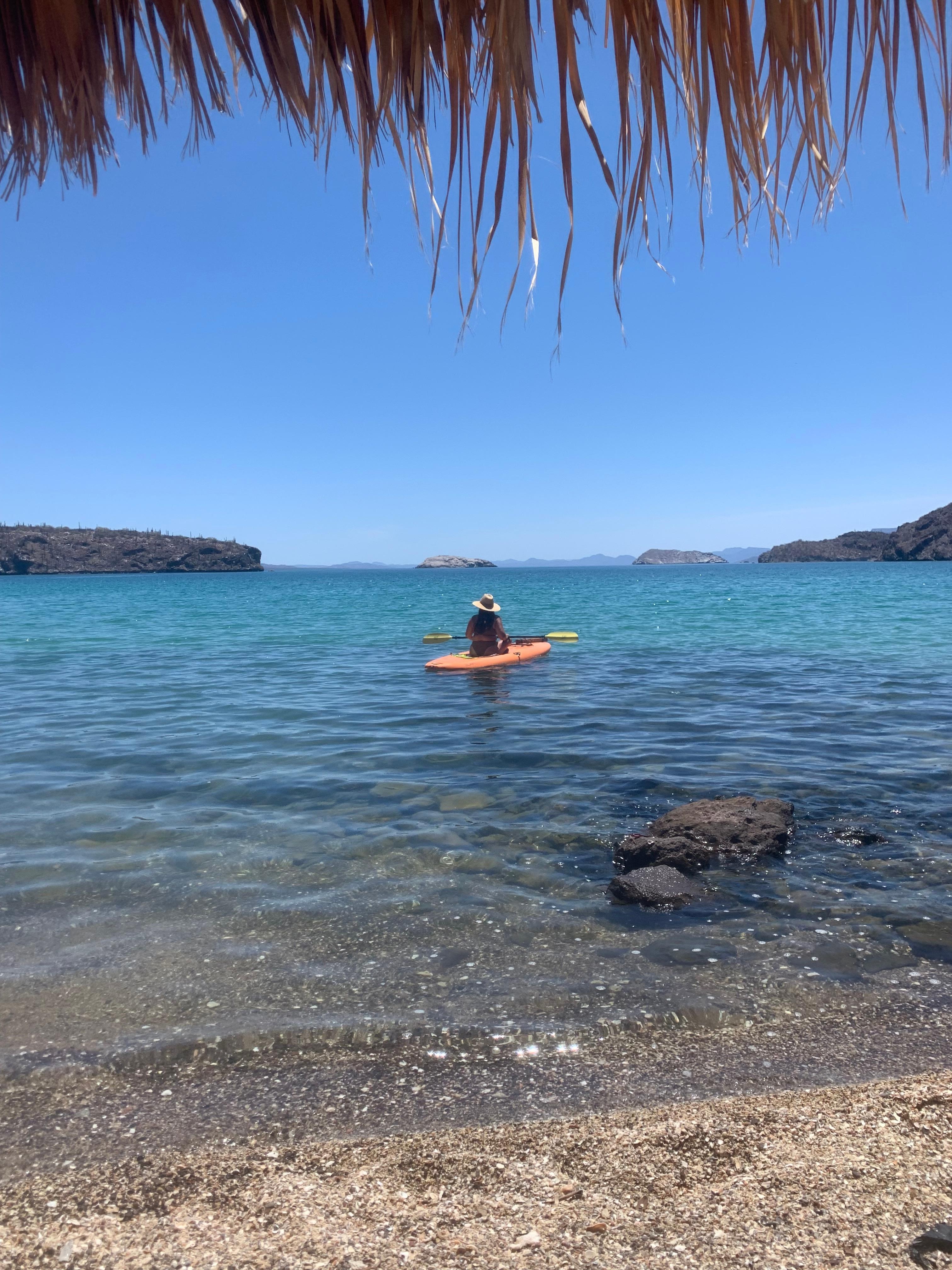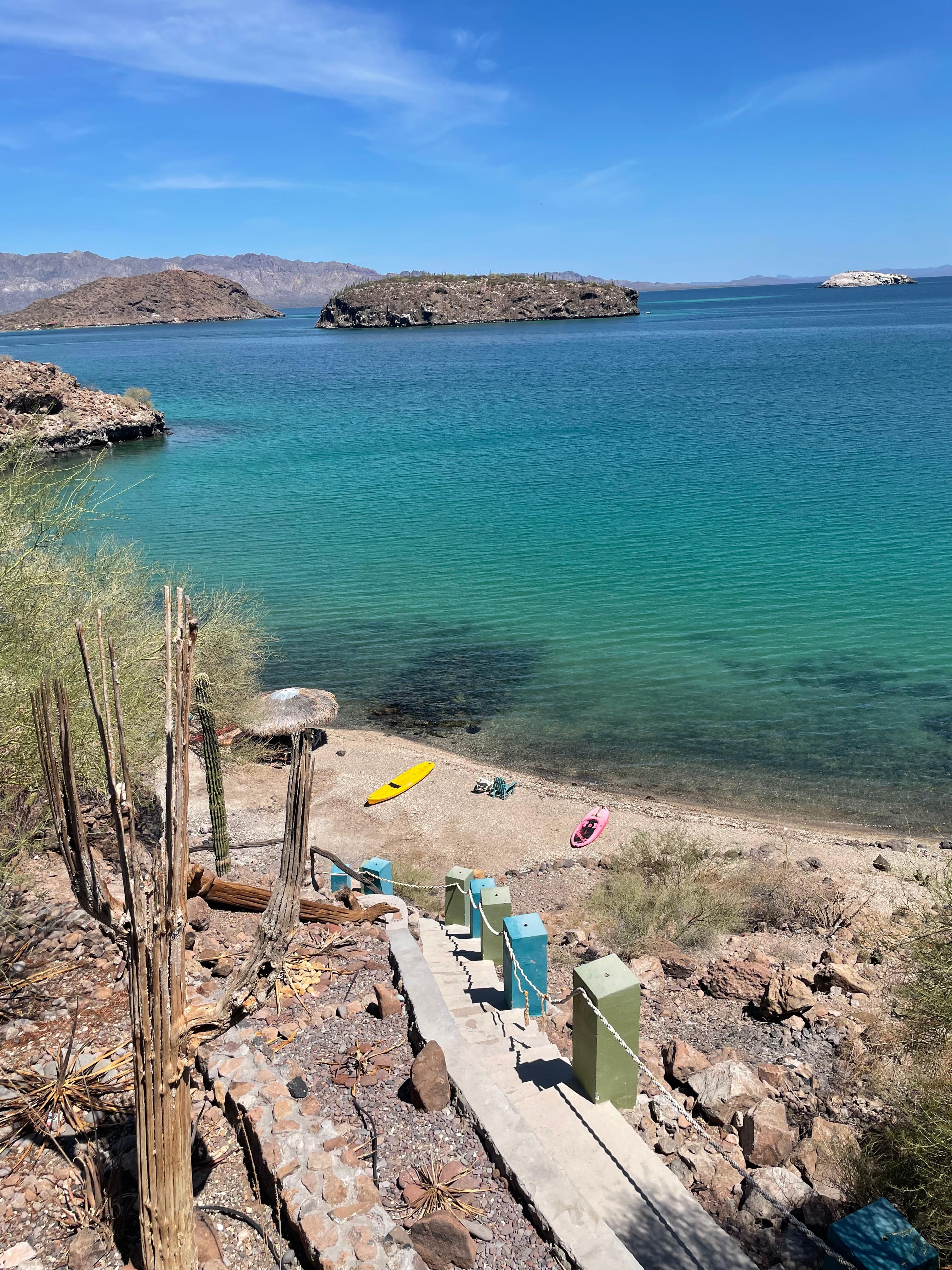 Blow the Casita is an outside shower and below that the private beach with your kayaks and SUPs. The Beach has a Palapa for shade, hot spring to the right, which is very hot, and a fire pit at mid-beach. There is normally loose driftwood to burn.