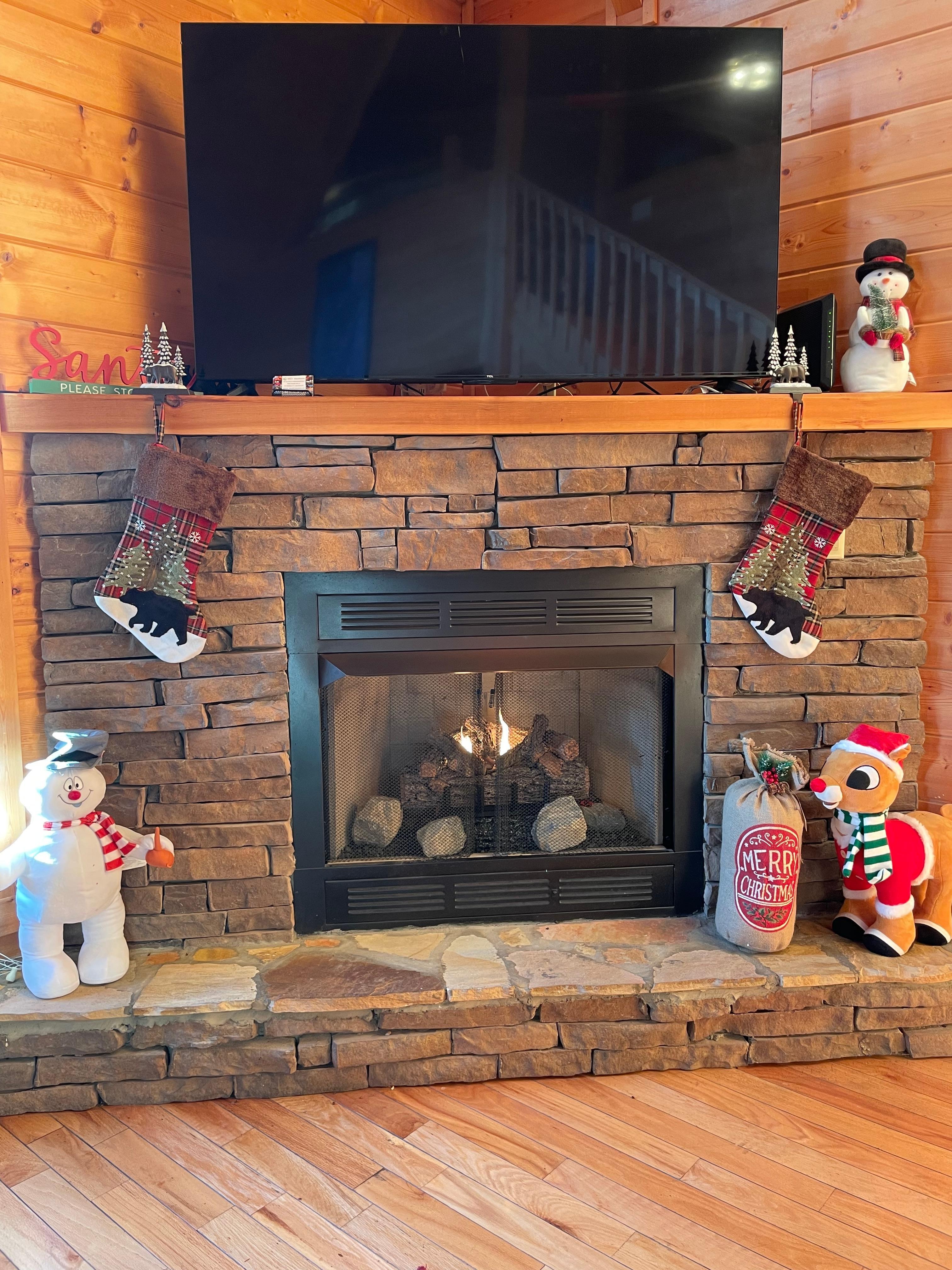 Mountain Memories is a stunning, luxurious cabin nestled in Wears Valley, just minutes away from major attractions. This spacious 2-bedroom cabin boasts 2080 square feet, featuring a theater room and a game room with breathtaking mountain views. The media room is equipped with a projection screen and six theater recliners. Upstairs, the game room offers a pool table and an arcade game. The main porch provides a wraparound deck with two rockers and a table with two chairs, while the lower porch features a hot tub and two additional rockers to enjoy the scenic views and fresh mountain air. The media room has been upgraded with a state-of-the-art Yamaha home theater system and a large projection screen for an unparalleled theater experience. It includes six luxurious black leather recliners and allows streaming of Xfinity movies or watching Blu-Ray discs. The entertainment room takes you back to the 90s with a full-size Multicade arcade game, featuring over 60 classic games. In the evening, enjoy a round of Pac-Man or nine-ball for a memorable night. The main level bedroom is a deluxe suite with a King-sized bed, smart TV, and a separate full bathroom with a shower/tub combo. The lower level bedroom also features a King-sized bed, smart TV, private Jacuzzi, and shower. There are three full bathrooms, one on each floor for convenience. The media room includes a Futon for an extra guest, and the game room has a bunk bed with a full-size bottom and a twin top, allowing the cabin to sleep eight comfortably. The living room's open floor plan on the main floor includes a 60” flat-screen TV and Blu-Ray player.