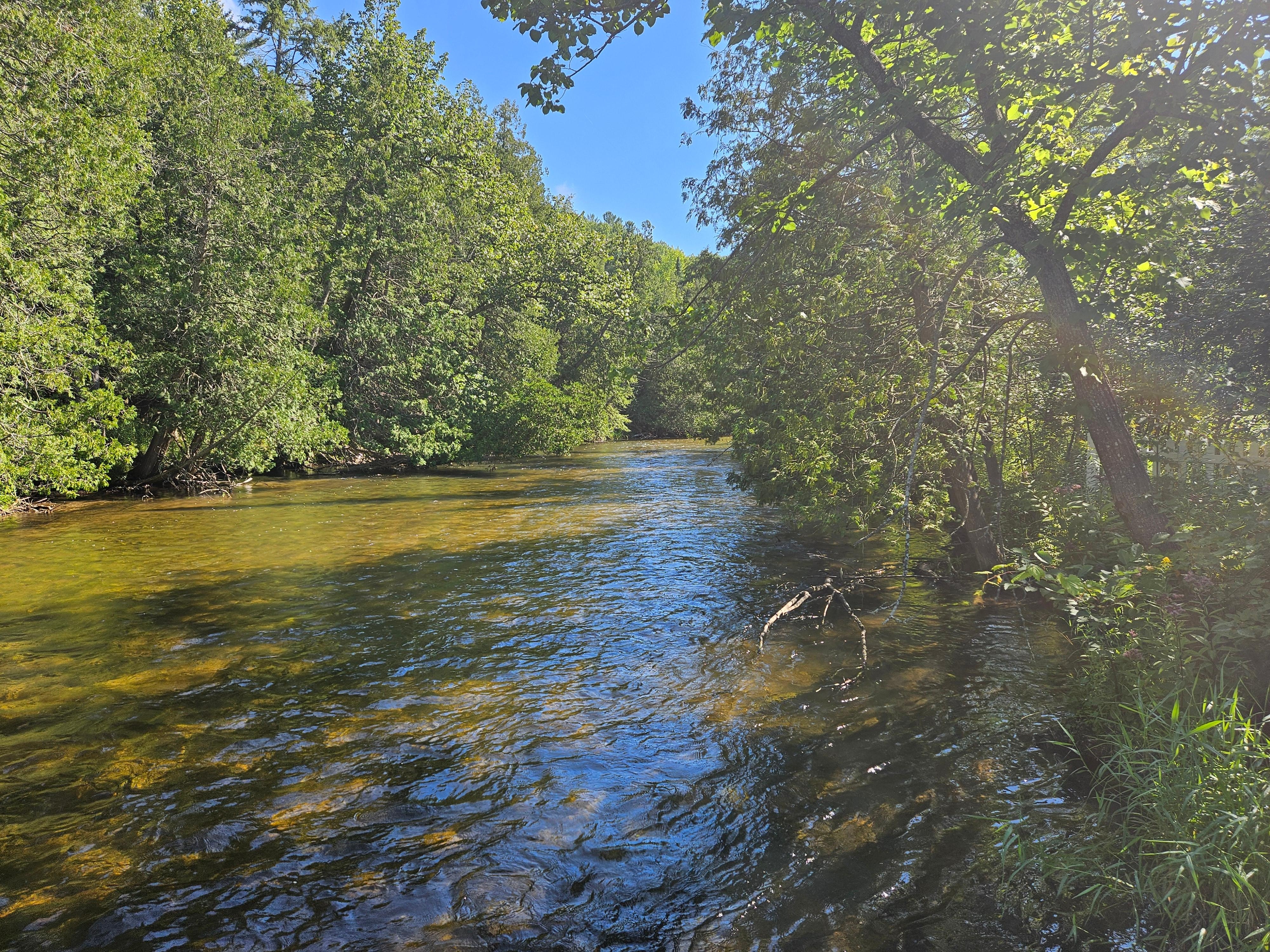 Welcome to River Life Paradise, a cozy 2-bedroom, 1-bath cottage tucked into 18 acres of private forested land with 2,600+ feet of direct frontage on the Boardman River — just 10 miles from downtown Traverse City. Enjoy a relaxing getaway surrounded by nature with a year-round hot tub, outdoor patio, fire pit, hiking trails, and access to world-class fishing and paddling right outside your door.