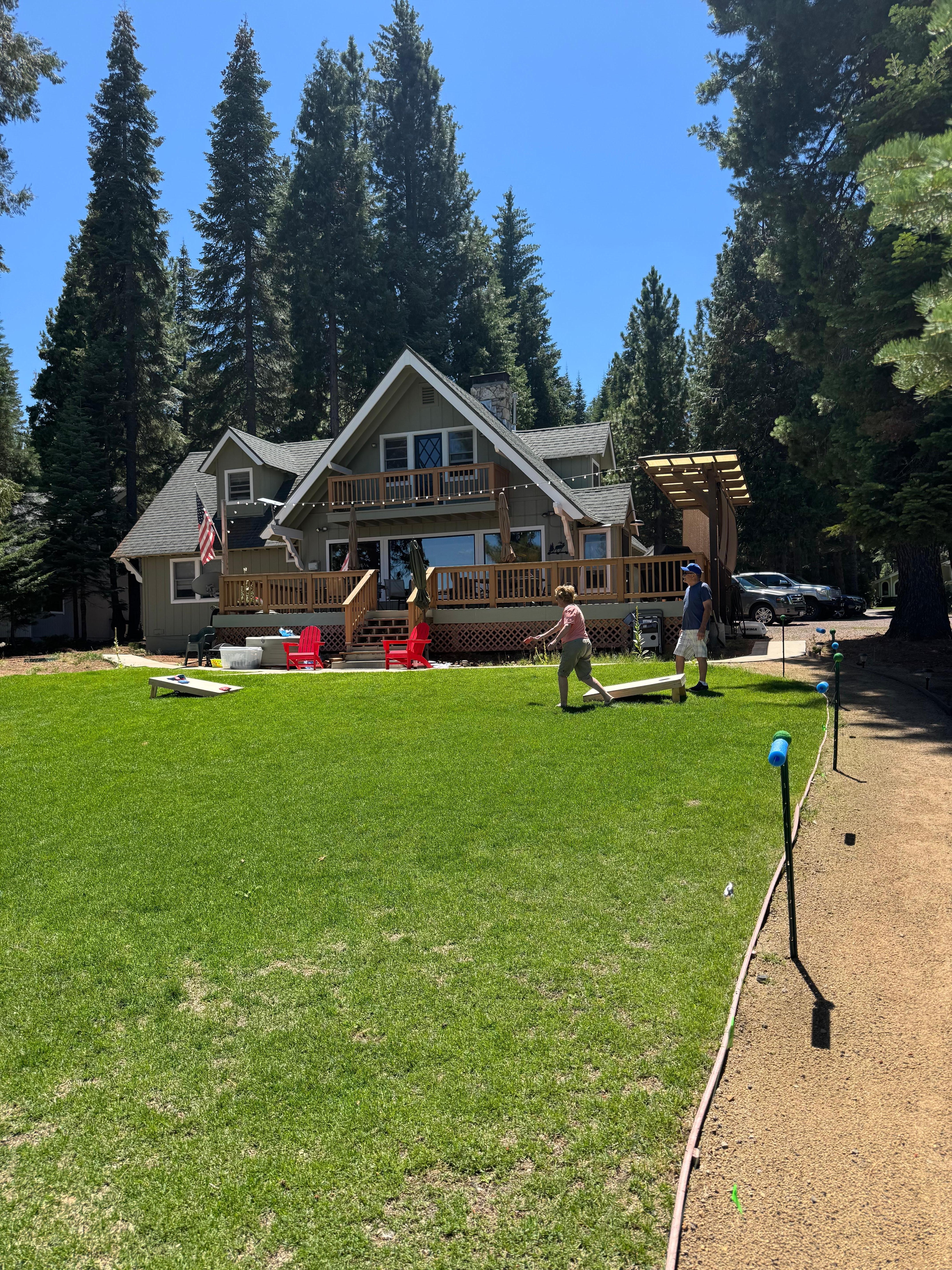 Recently remodeled 4 bedroom / 2.5 bath lakefront home (sleeps 10) in the Lake Almanor West community. You'll enjoy all that Lake Almanor has to offer! Downstairs, there is a fully stocked kitchen with walk-in pantry, dining room table, large laundry room/mudroom, living room with a flatscreen smart TV (for entertainment, the home includes DVD player, variety of family-friendly DVDs and games, WiFi), Bedroom #1 (King bed with lake view), Bedroom #2 (twin bunkbeds) and full bath. Upstairs, you'll find Bedroom #3 (King bed with lake view, balcony, and large primary bath) and Bedroom #4 (Queen bed, Twin bed, Full bed and 1/2 bath). The large, wraparound deck has a gas grill, outdoor cooking/prep table, 2 dining tables with seating for 10+, and a spectacular lake view! A large, gently sloping lawn leads you to the water's edge where you'll have access to 3 kayaks and a large, custom dock (accommodates 2 boats), and 2 buoys. There is ample parking in front. Your group will have access to the Lake Almanor West amenities such as the private community boat launch, private rec area (includes a playground, volleyball and basketball courts, bocce courts, lake access), Tennis and Pickleball courts, and a lovely 9 hole golf course, with driving range, pro shop and restaurant. Home includes a wide variety of board games and puzzles as well as outdoor lawn games. This lakefront home is the perfect setting for a memorable family vacation. (Please note: 7 night minimum. No smoking, no pets, no events, and strict maximum of 10 guests.)
