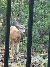 The pace is slower here in the foothills of the Rocky Mountains. Elevation is 8,000 ft and we enjoy an ideal climate with 4 distinct seasons. There is snow in the winter, summers are cool, with very little wind. Most days the sun shines, so combined with the dry climate, it's usually comfortable outdoors. The home has radiant heat under the floors for the winter and we don't even need air-conditioning here in the cool mountains.