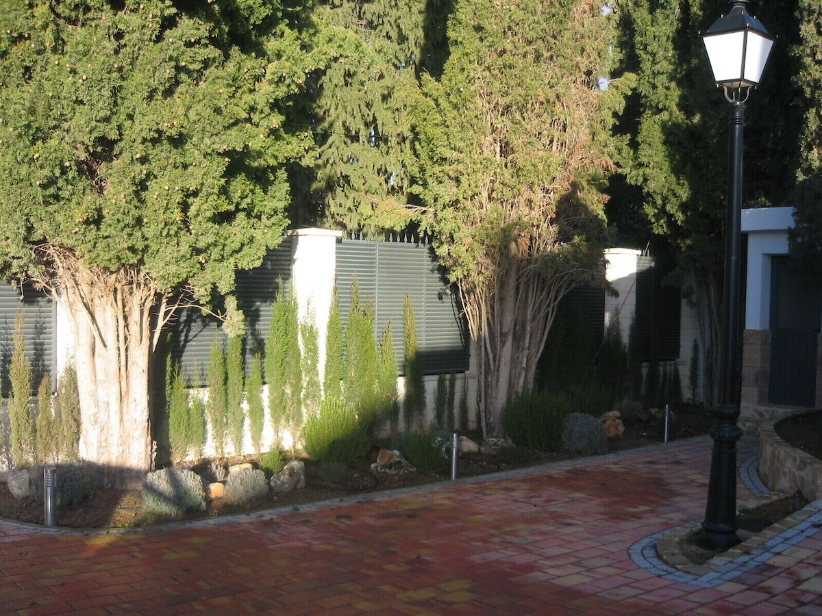 Luxury Villa in Los Chopos de Albacete urbanization with 4 bedrooms, three bathrooms, living room of 80 m2, house of 350 m2 and plot of 1.800 m2, for 8 people with indoor pool, Jacuzzi, barbecue, very close to the city center and equipped with all luxury details, very quiet and bright basketball court arbor wifi piped music throughout the plot green areas garage for two cars, gazebo