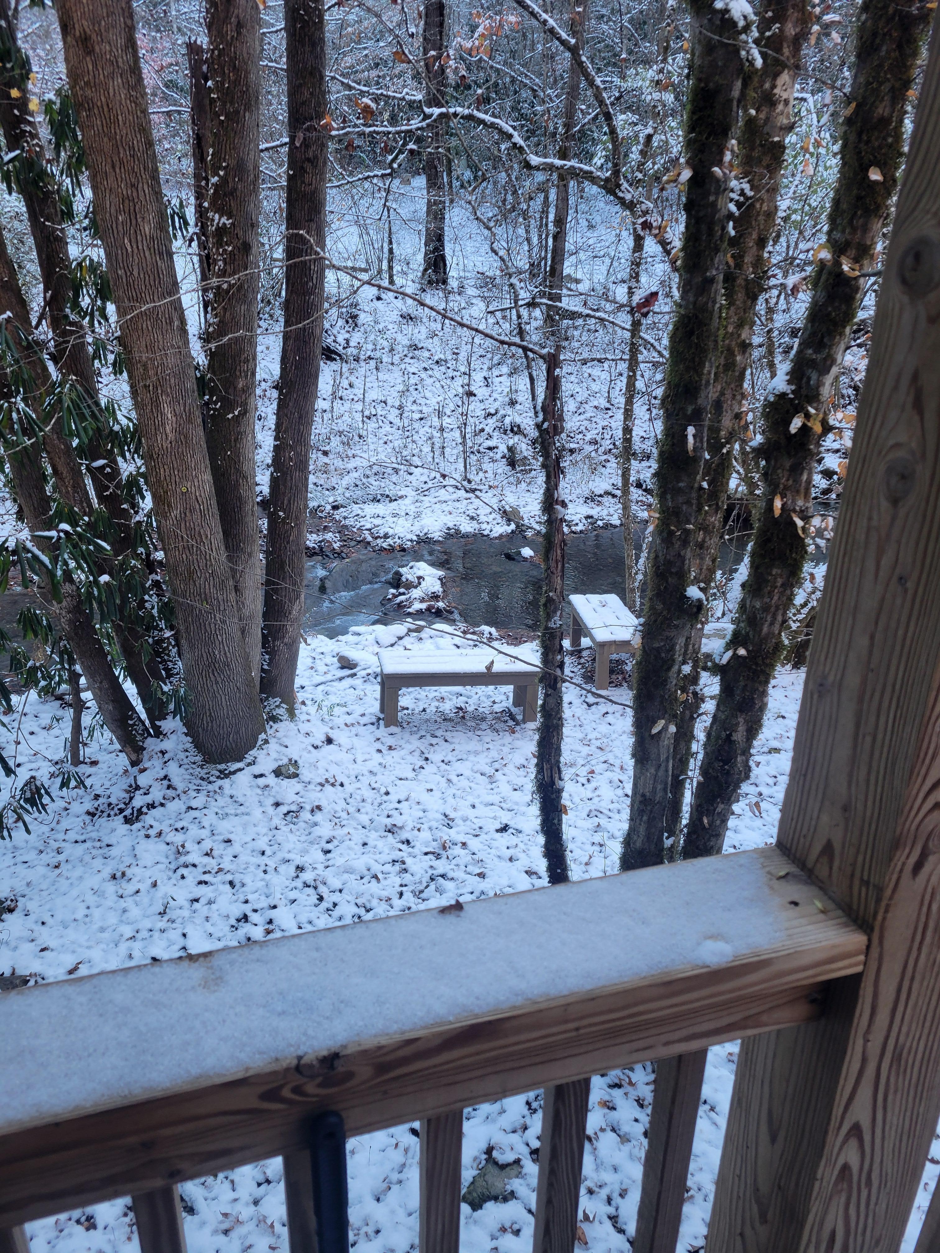 Cabin was absolutely beautiful. Very well stocked and clean. Hot tub and the easy access to the soothing sounds of the creek was my absolute favorite!!Only suggestion would be a little more lighting on the front porch during the dark.