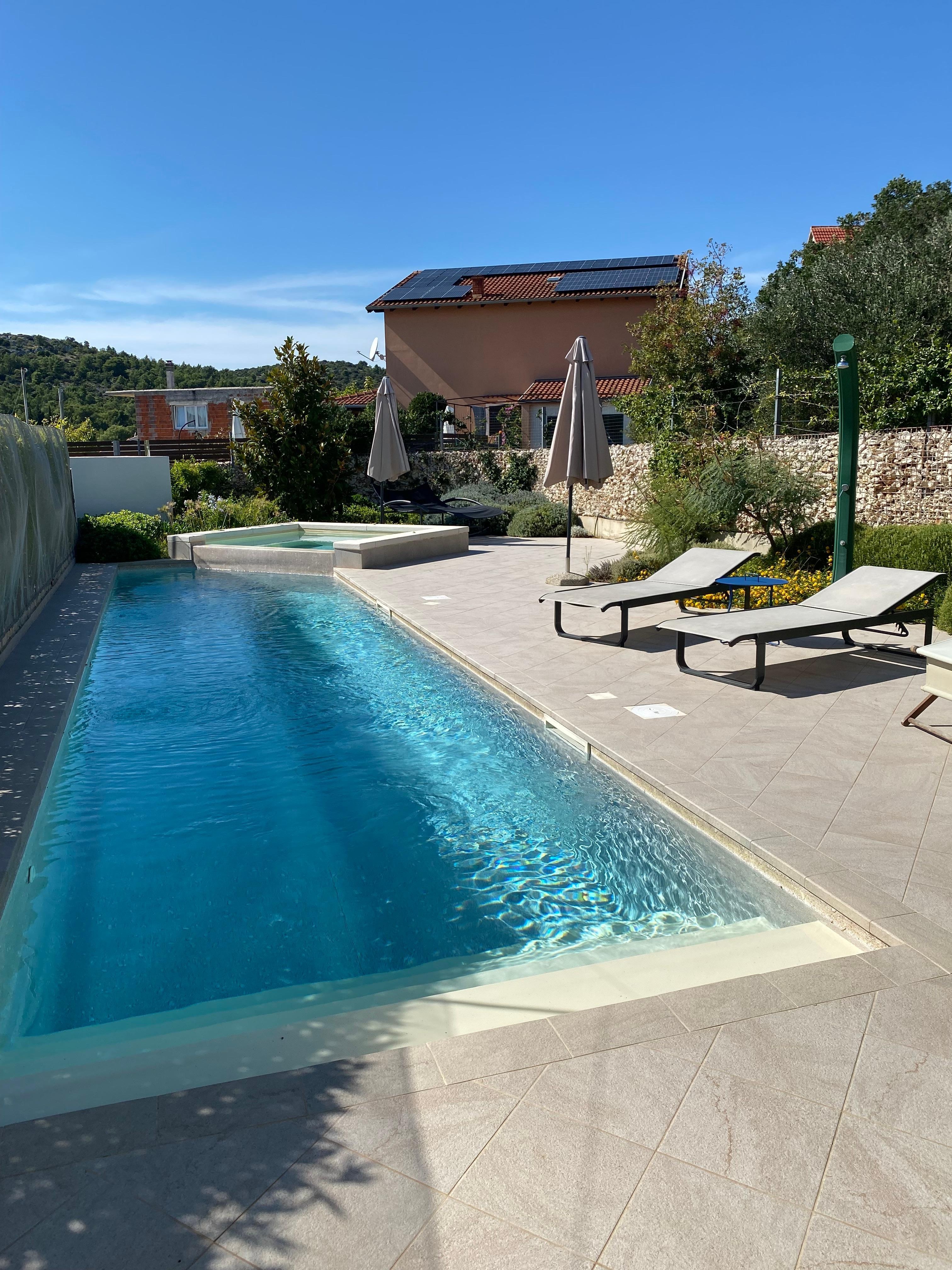 Located in Šibenik, this spacious 3-bedroom villa comfortably accommodates 6 guests, making it ideal for families or groups of friends seeking a relaxing getaway. The villa boasts a private swimming pool complete with sun loungers and a sun shower, plus a luxurious bubble bath for the ultimate summer retreat.