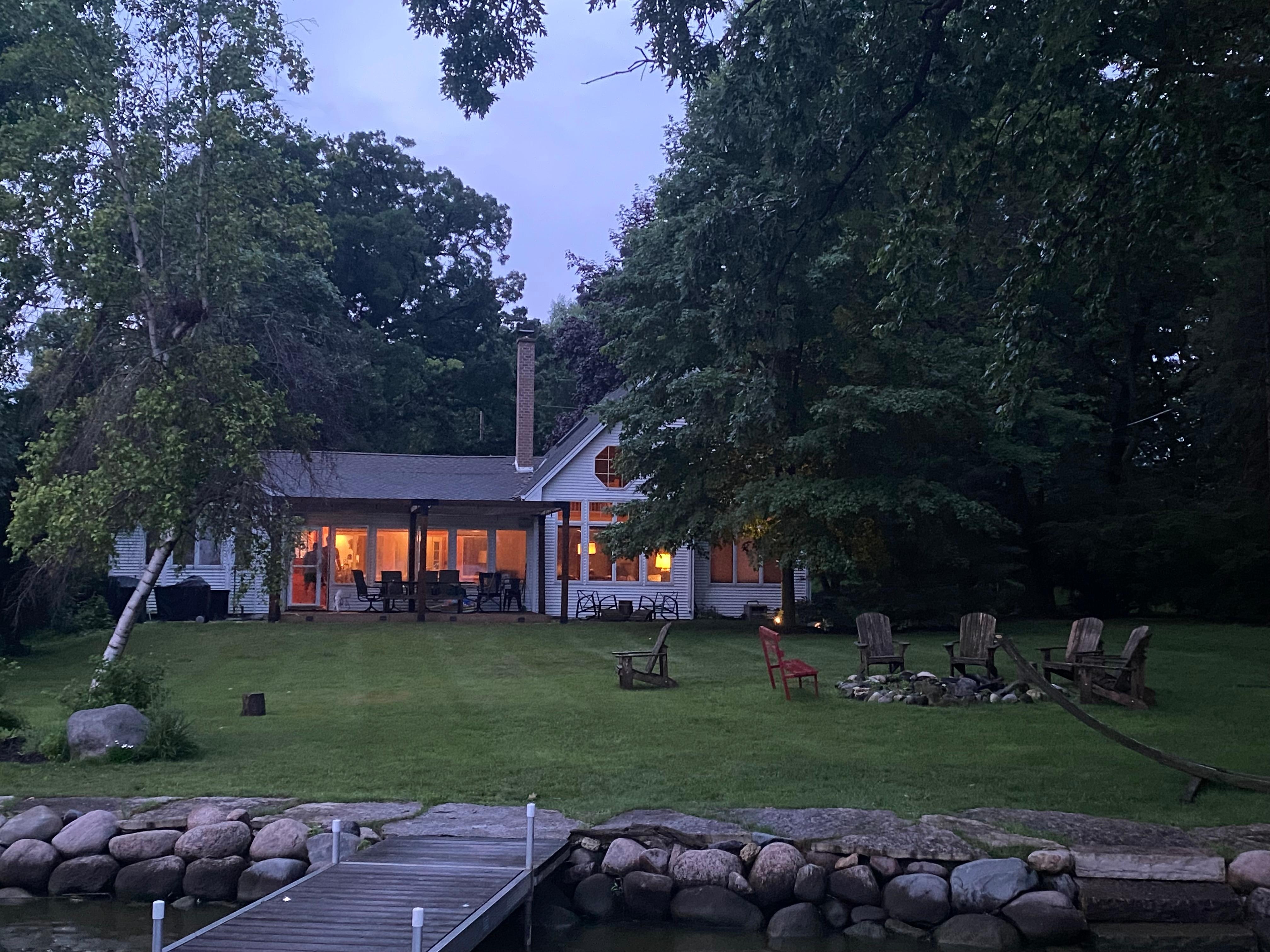 Original pine paneled cottage with a recent addition doubling the size is rustic, modern and comfortable. Four bedrooms (3 + private loft) with 2 queen beds and 3 twin bunks. Fully equipped kitchen, sunroom with game table, living room with Lake views and space for game night, reading and lounging. TV (no cable, there is AppleTV you can log into your account or stream content from your phone), Sonos music system and a bluetooth speaker. The dining room off the kitchen seats 6-10, with a sitting area in front of the original stone fireplace.
