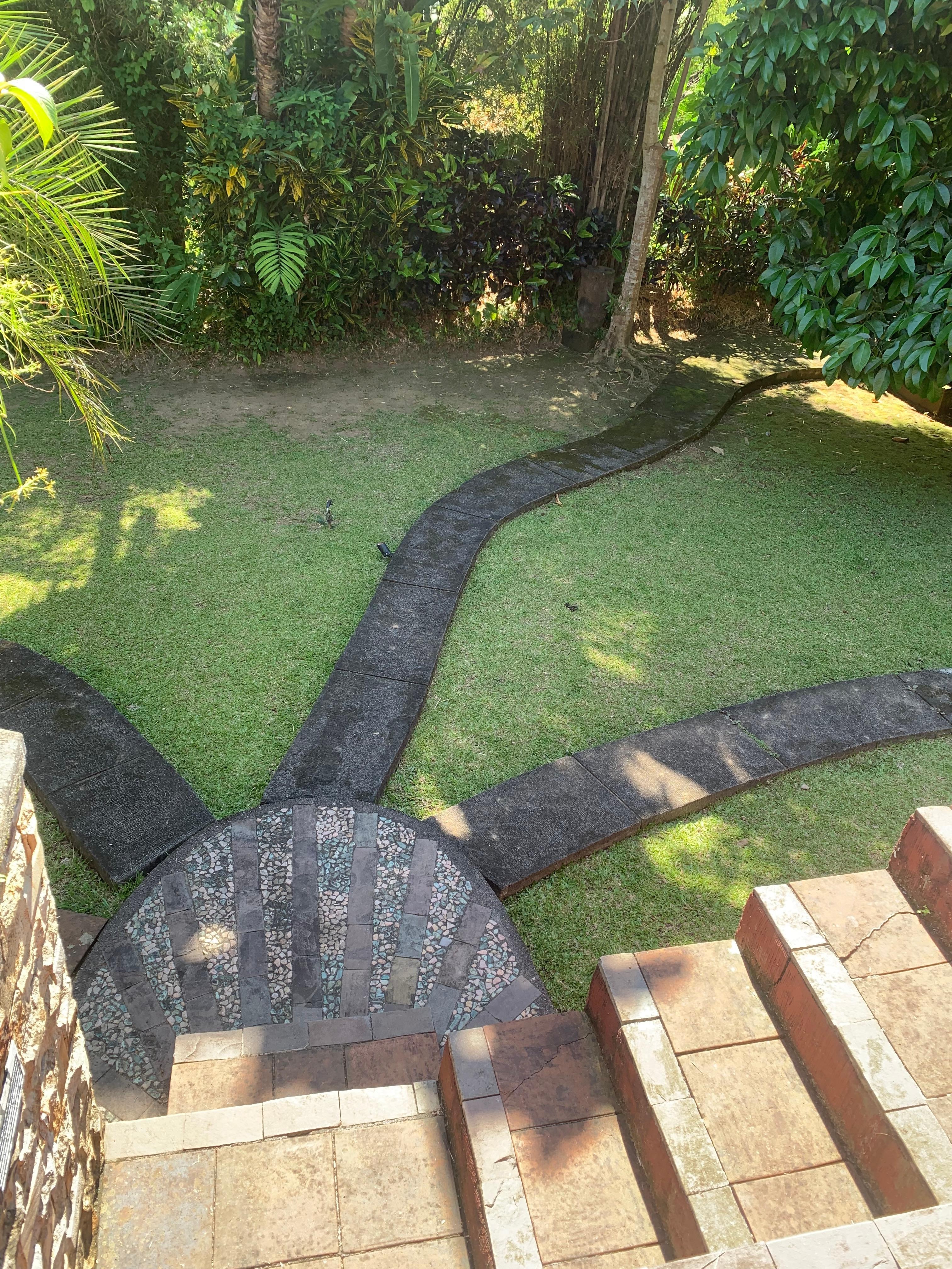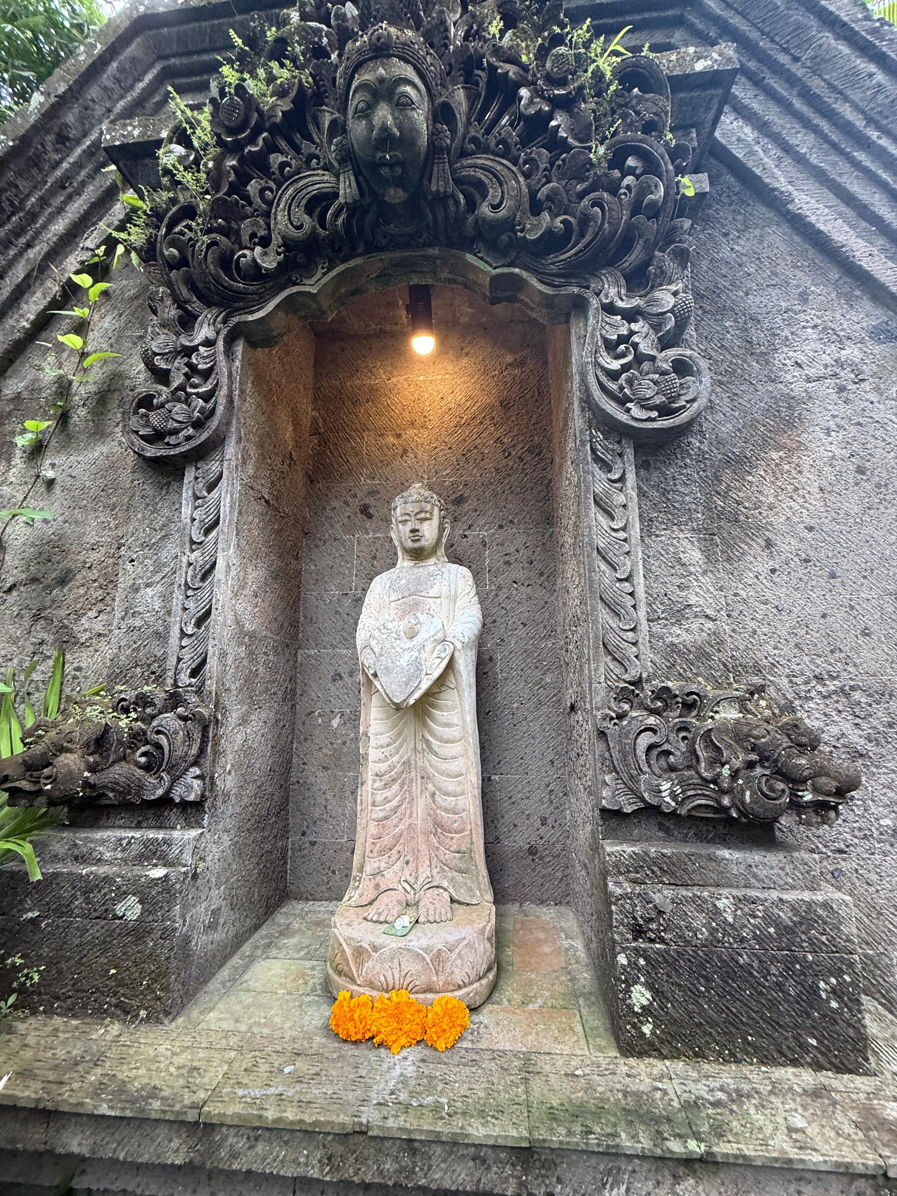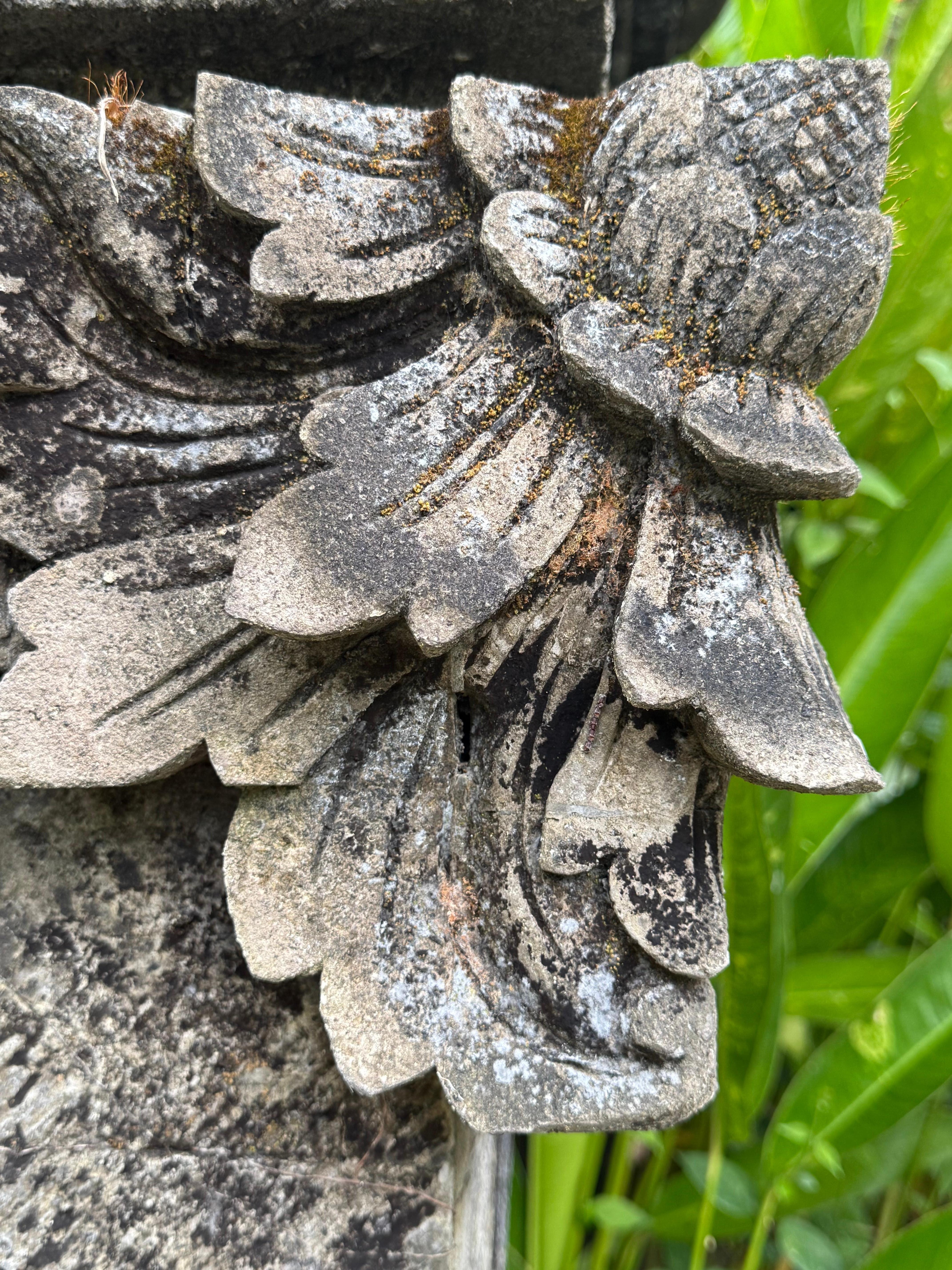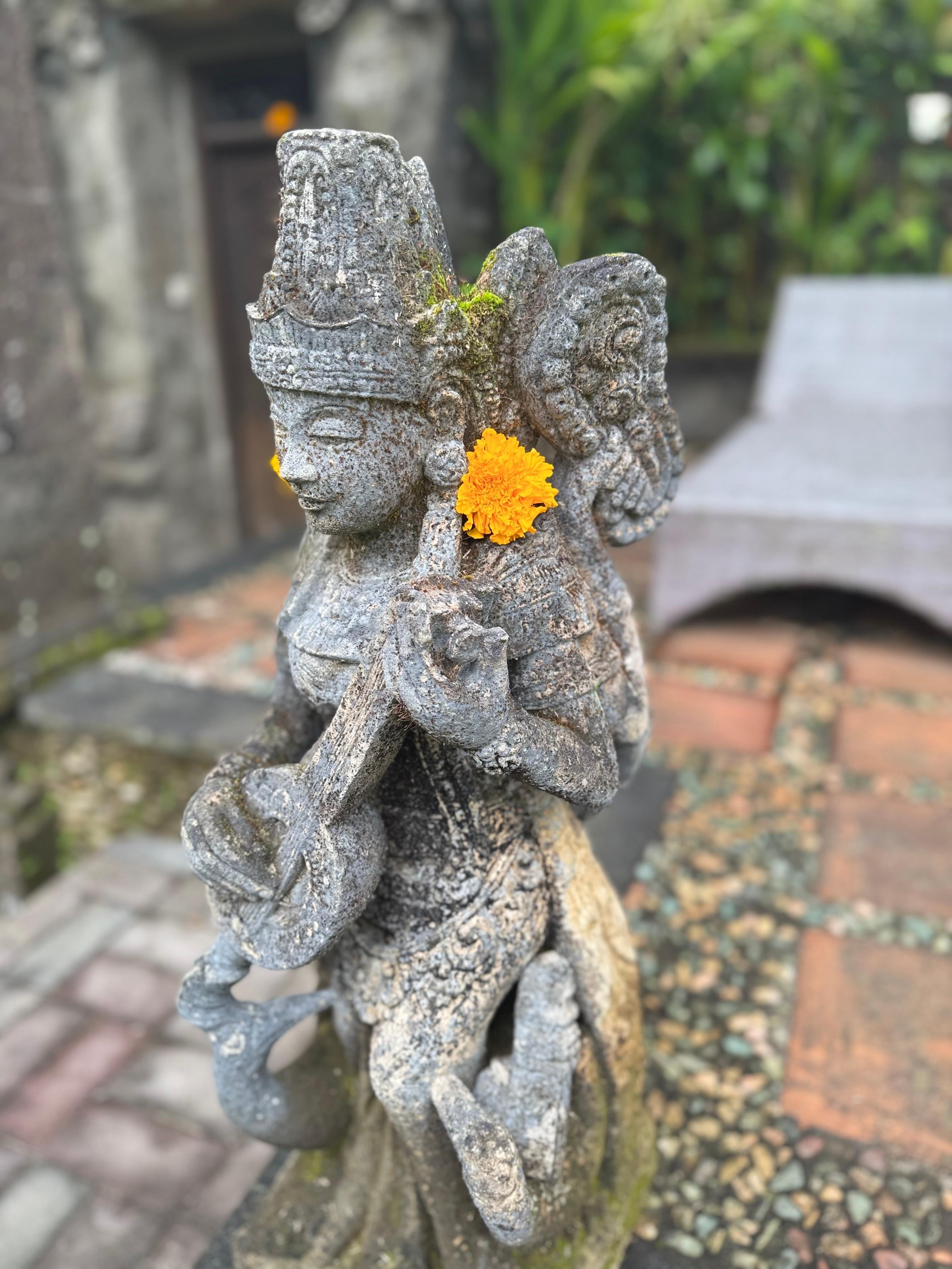 Artistic touches are everywhere you look, both in the house and out. There are paintings by local artists, Indonesian carvings, carved wood and stone around windows and doors, high thatched ceilings and beautiful rock and tile work, all hand done.