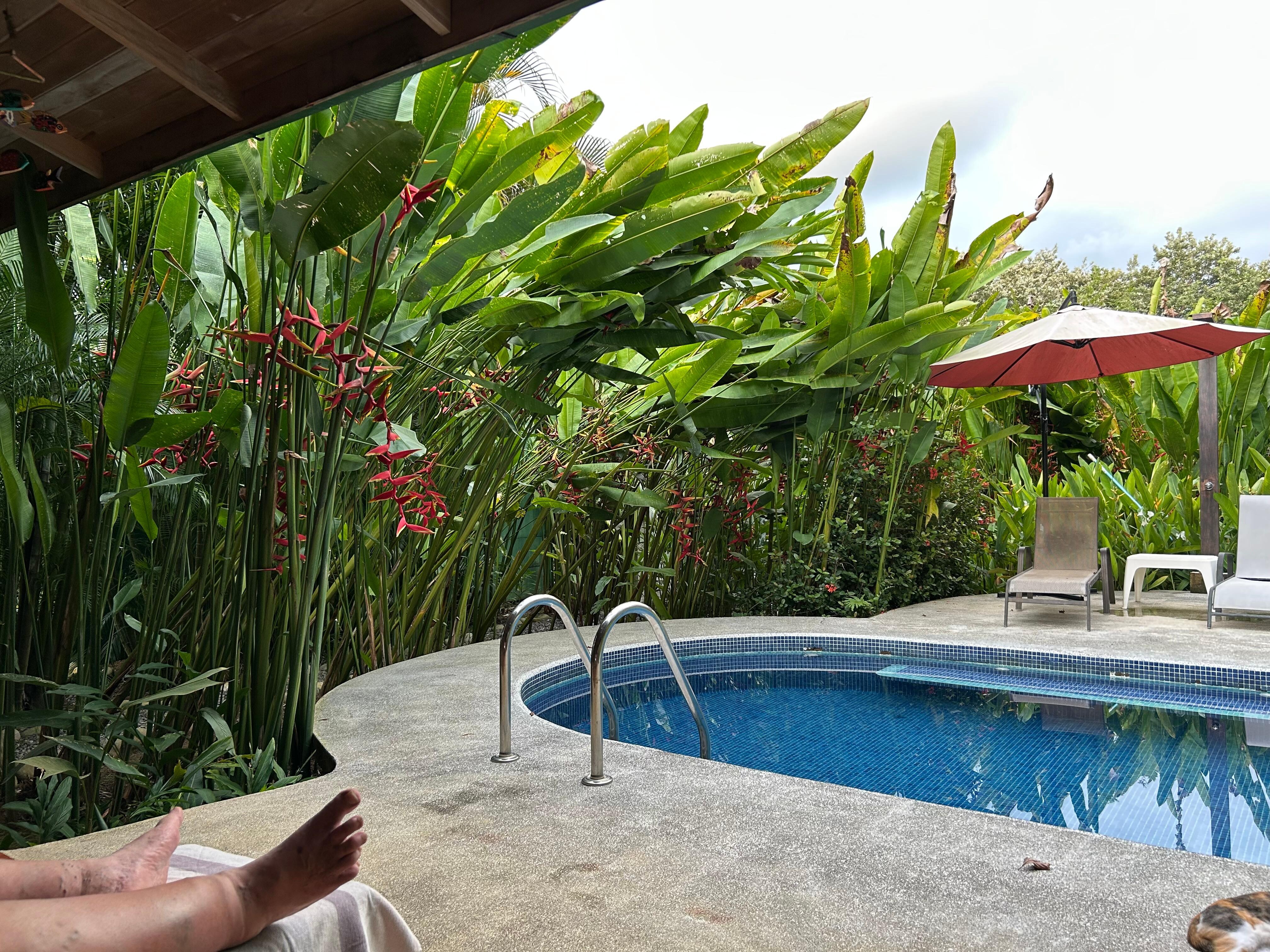 The spacious external porch offers two rocking chairs to enjoy the sound of the Ocean, while navigating on a comfortable wireless internet. Or you can just hang the hammock and lay, watching at the coastal jungle and experience the sight of a monkey or of a loud screaming pair of Scarlet Macaws!