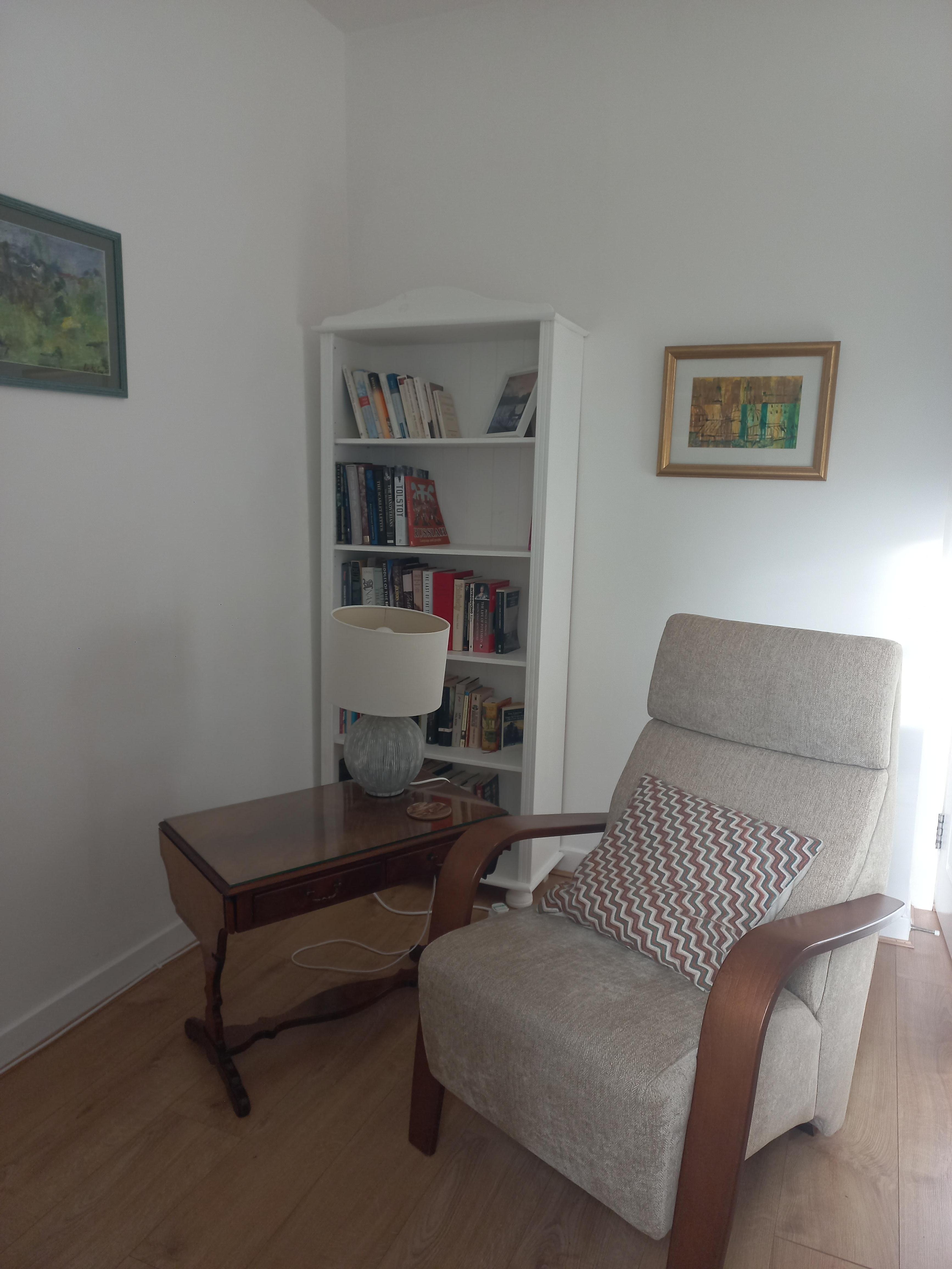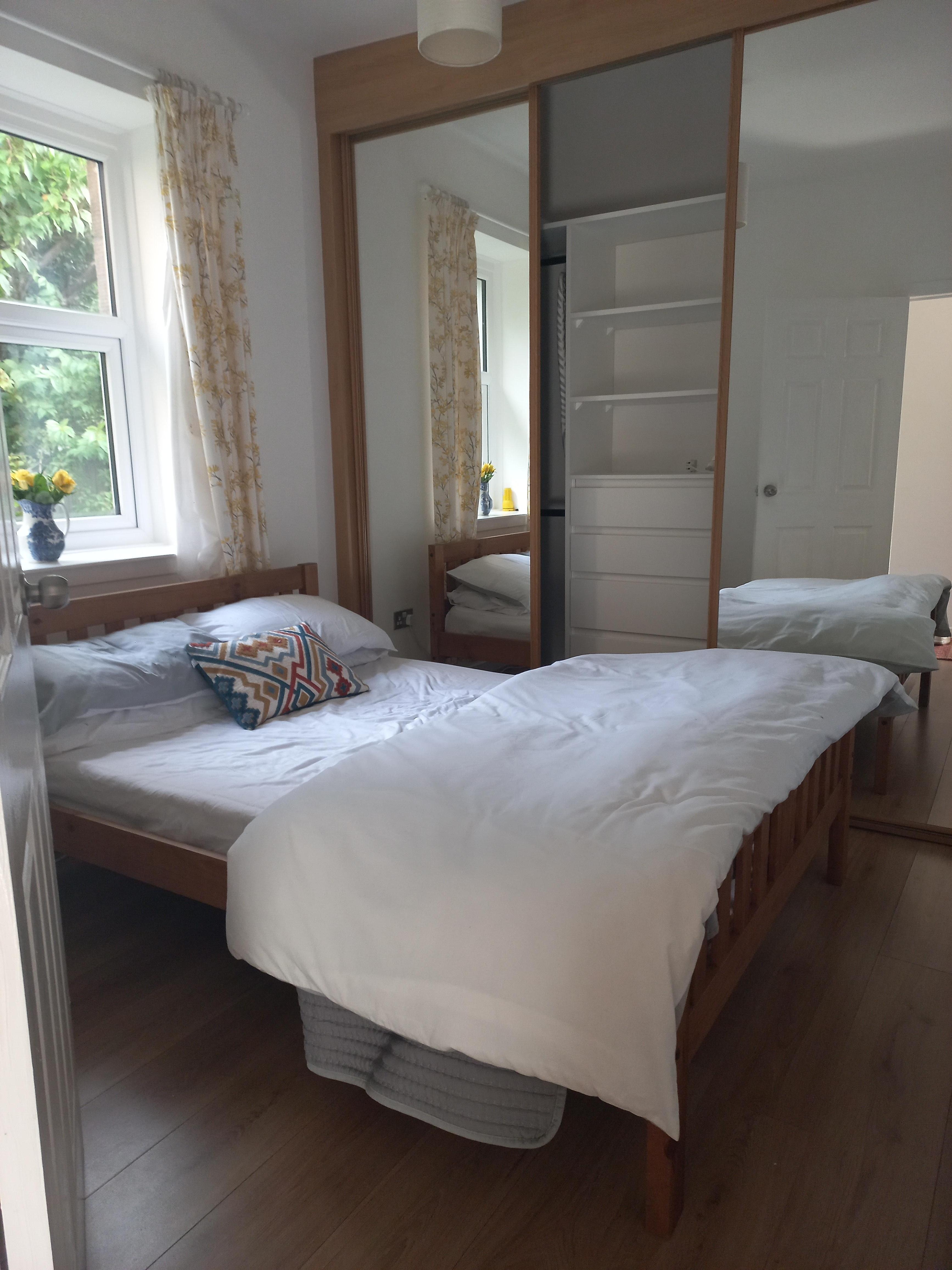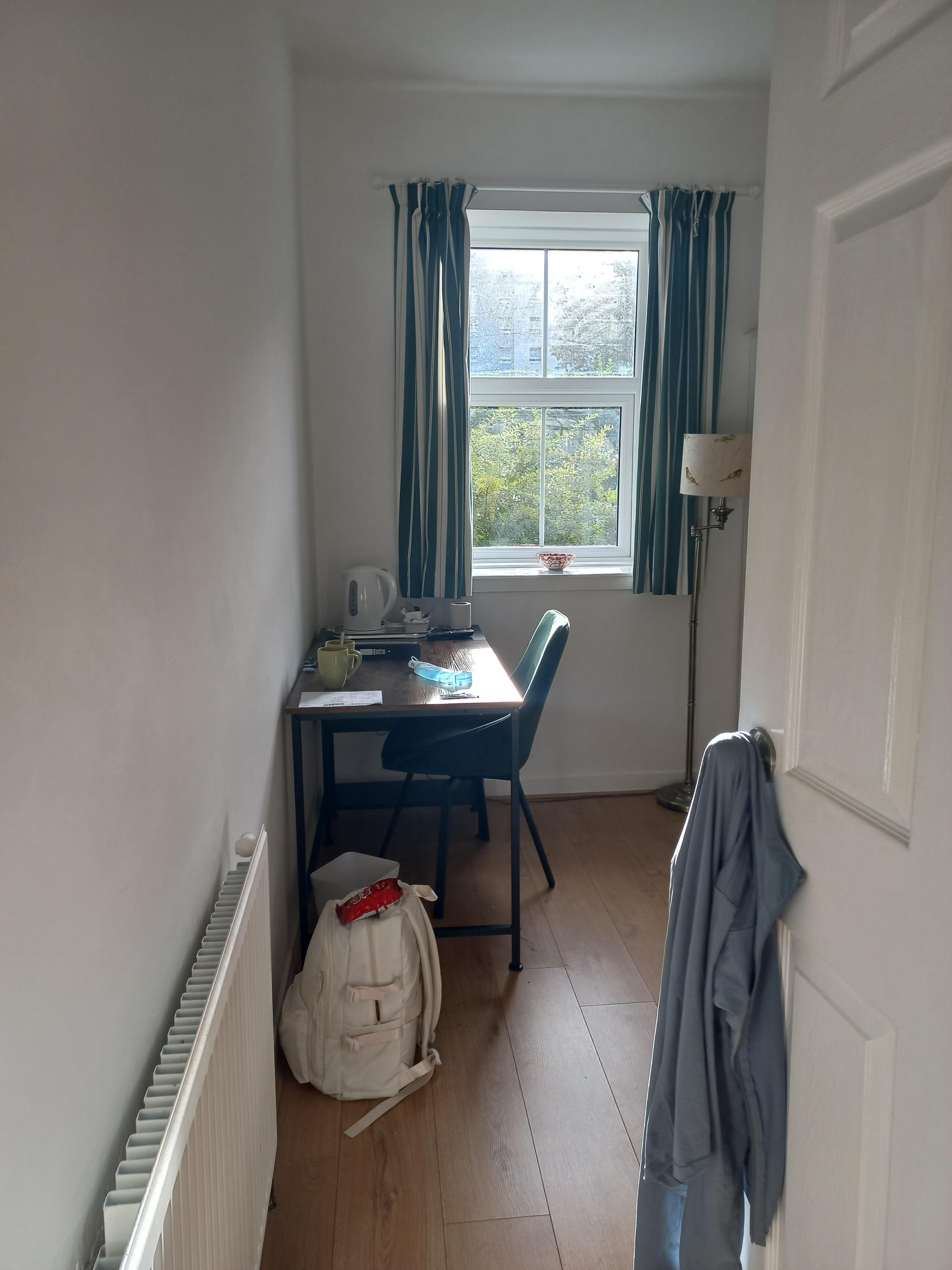 Comprising one double bedroom with wardrobe and drawers. Separate sitting room with and desk and chair, free WIFI, TV, two easy chairs, kettle with complementary tea and coffee. Showeroom and toilet. Please note there are no kitchen facilites. Own entrance through rear of property, four steps to entrance. Use of shared back-garden with owner.