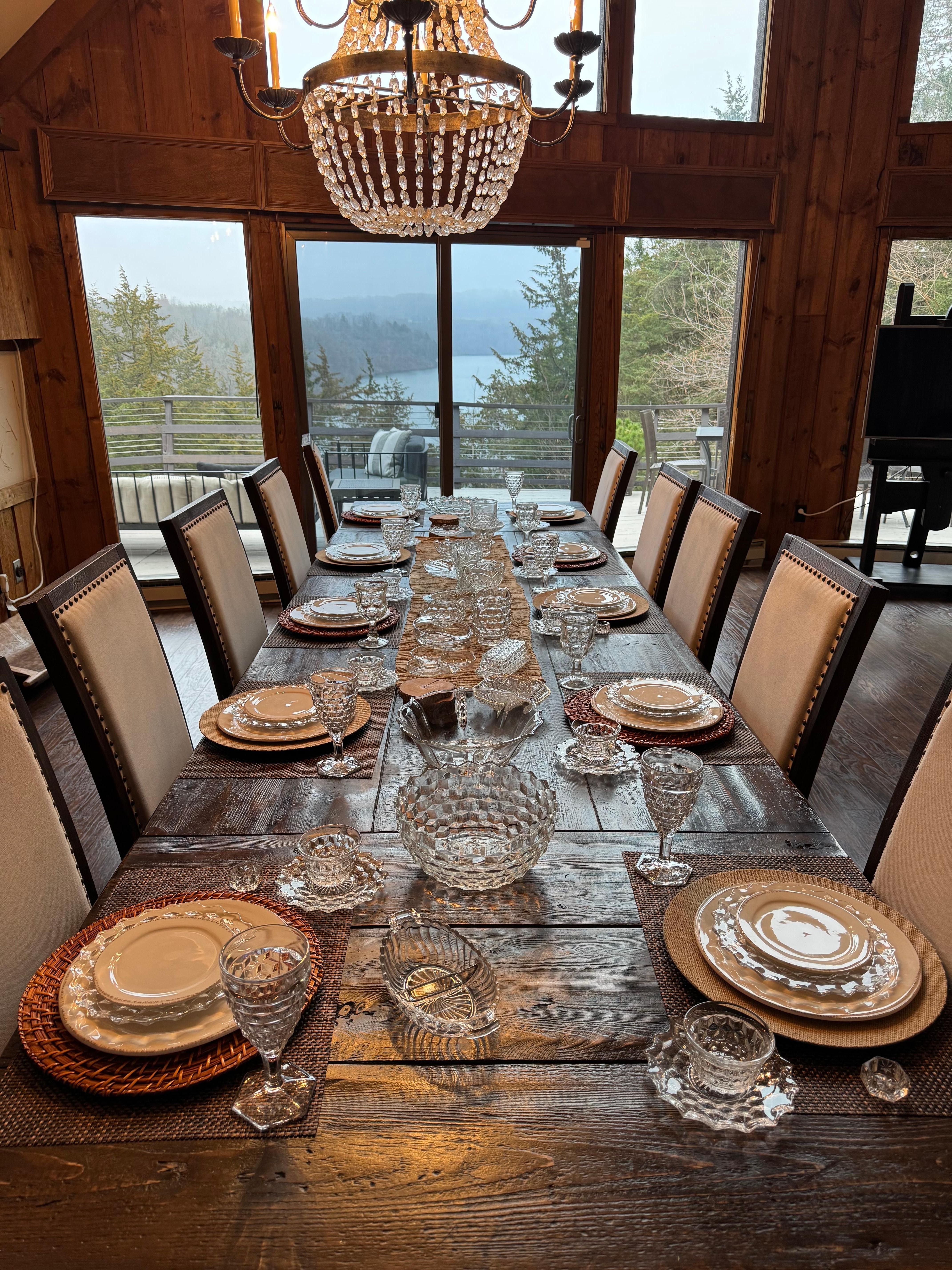 The inside of the chalet boasts European influenced wood-working and architecture throughout. The interior design is a beautiful fusion of rustic-modern. The home has a reclaimed dining table with seating for 10 people; dueling sofas aside the stone, wood-burning fireplace; and a lower level game & billiards area surrounding a decorative wood-burning stove that can also fit up to 10 people comfortably.