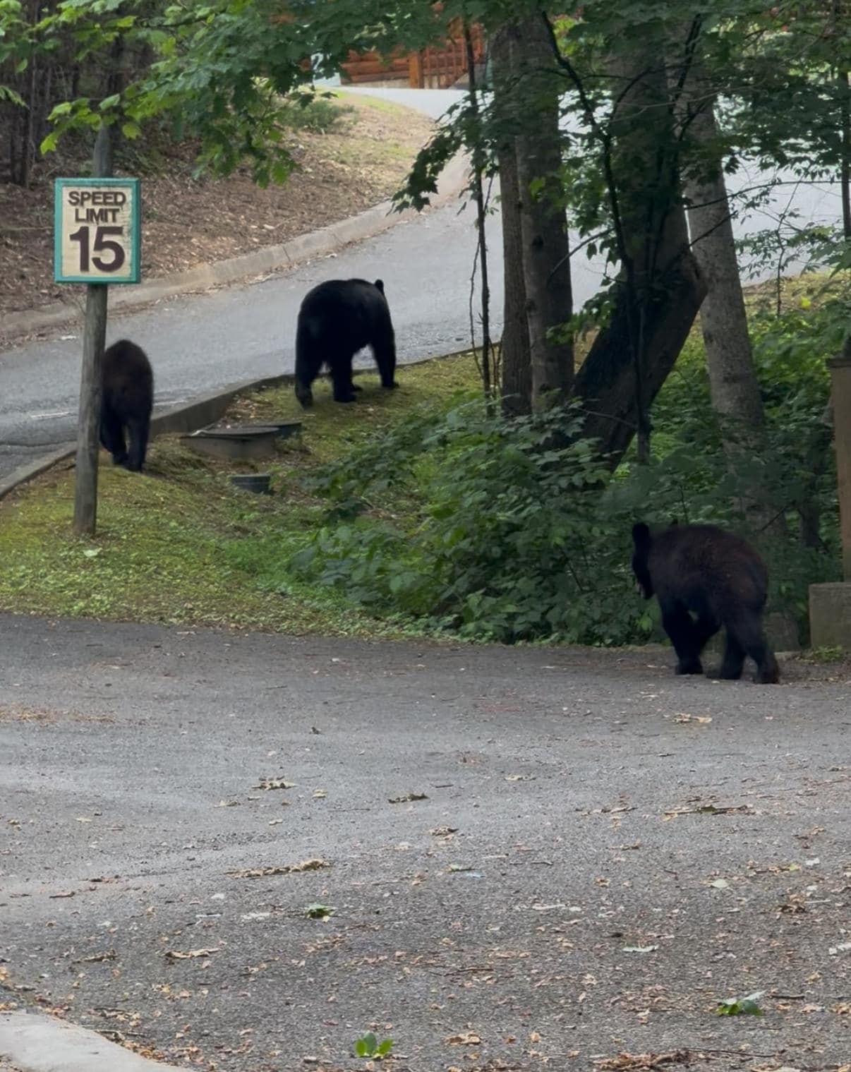 Gate, Roads in Resort, Pool area, CABIN PARKING AREAS, external STAIRway AND CRAWL SPACE TO UTILITIES are ALL under 24/7 CAMERA surveillance. This helps with HOUSE RULES & warns OTHERS OF ANY BEAR SIGHTINGS THAT MAY OCCUR near YOUR area.