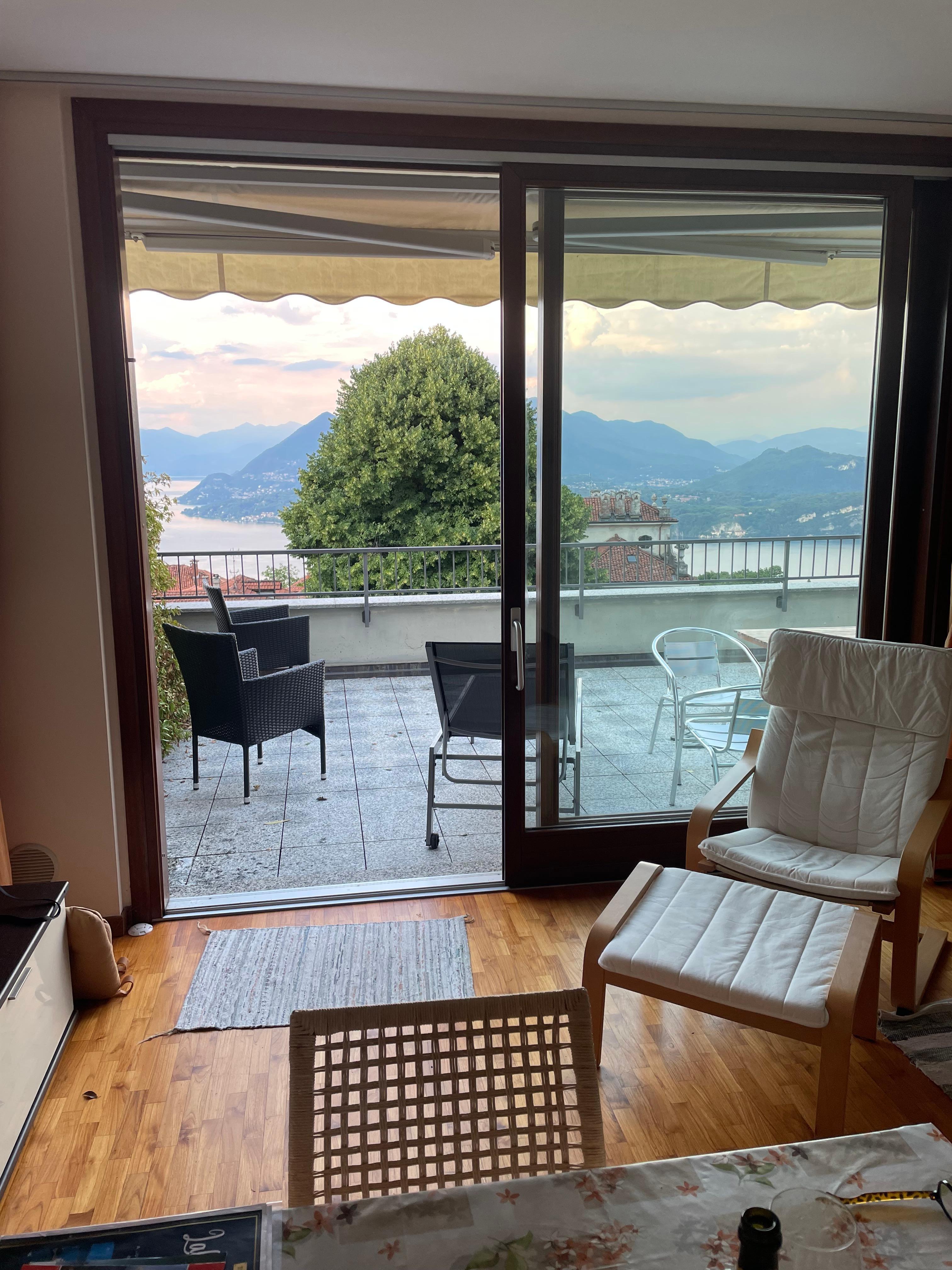 Greetings from the beautiful Lake Maggiore! This bright, spacious apartment features a great open floor plan and lots of practical amenities. Being an owner’s unit, it is fully equipped with all the necessities and has been furnished to the highest standards. One of the best features are the big sliding terrace doors which flood the unit with natural light while providing stunning panoramic views of Lake Maggiore and the beautiful surrounding landscape. The spacious terrace offers complete privacy and is a great place for dining, sunbathing or simply relaxing. While most days enjoy a gentle refreshing breeze from the lake below, during summer an awning can be easily extended over the entire terrace, allowing for continued use of the space even during the hottest part of the day. On rainy days, wi-fi internet access and two flat-screen TVs provide plenty of entertainment options for the whole family, as do books and a variety of board games which are also provided. A floor heating system allows for the setting of a constant, uniform temperature throughout the unit and other useful amenities (dishwasher, washing machine, etc.) will ensure maximum comfort and convenience during your stay. The apartment is located in a secure building with elevator and comes with a private one-car garage. To provide for safe and relaxed stays it is also professionally cleaned and sanitized after every rental. Finally, our simple self check-in process makes it convenient and offers complete peace of mind to anyone who might otherwise worry about late arrivals or any unexpected delays.