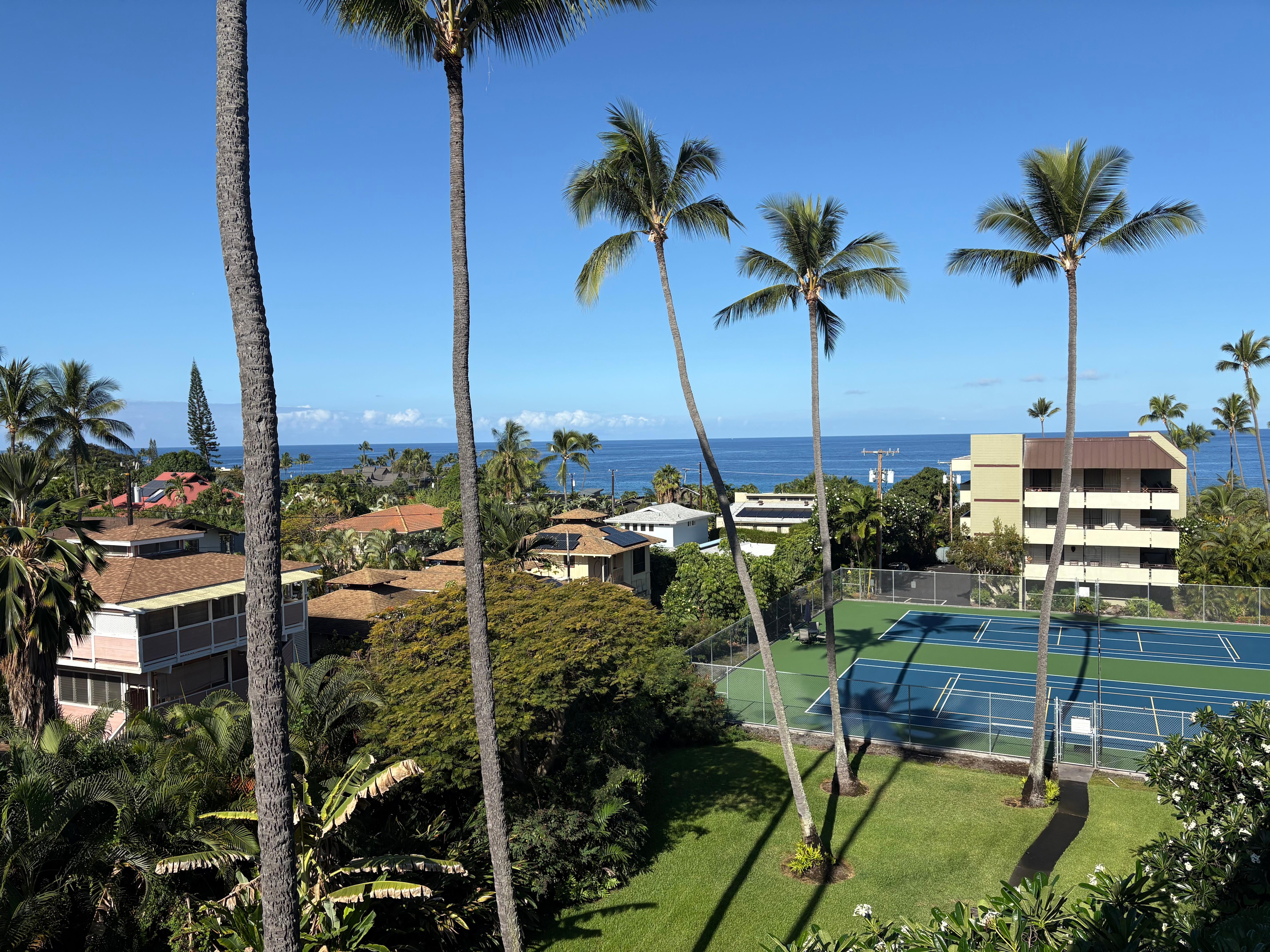 Aloha and welcome to our condo at White Sands Village. Brand new to the rental market, this wonderfully appointed 2-bedroom, 2-bathroom top floor condo offers everything you’ll need to enjoy your stay in Kailua-Kona and the Big Island Of Hawaii. This newly upgraded unit is located in the back of the complex, away from Alii Drive, offering beautiful ocean and mountain views, renewing sunrises and spectacular sunsets (Sept-March) from your 27 foot long lanai. And it’s quiet! You’ll enjoy the tranquility and privacy our location offers, while the beach is just steps away.