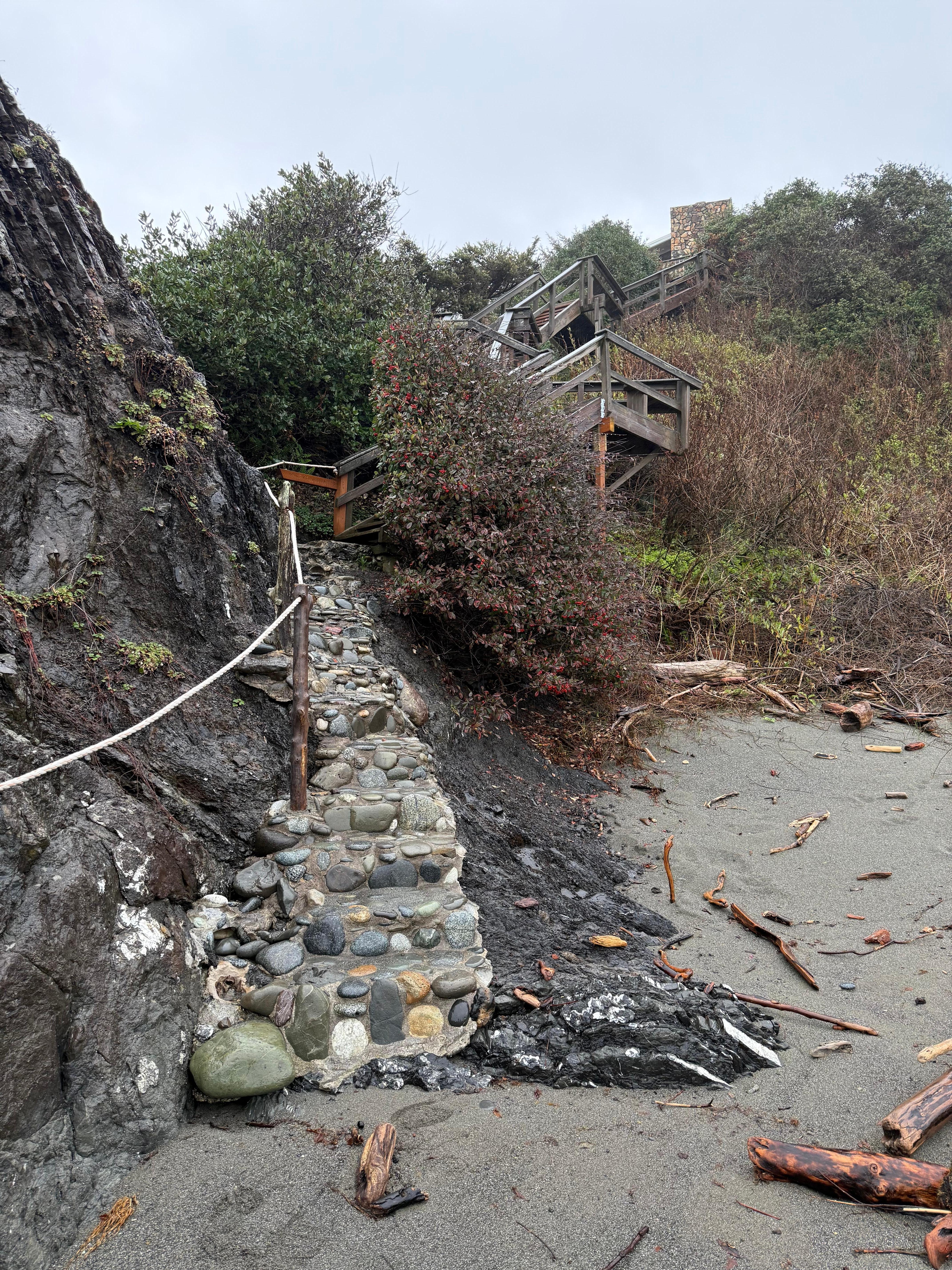 Come enjoy the beautiful southern Oregon coast at this spacious three bedroom/three bath house perched on ocean front property, just south of the Brookings Harbor, Brookings, OR. It has an expansive deck that invites sunbathing, with private stairs (with built in viewing seats as you ascend/descend) leading down a secluded driftwood strewn beach. At low tide, enjoy an easy stroll along the beach (sea shell hunting and tide pools galore) all the way to the harbor jetty, only about one mile away.