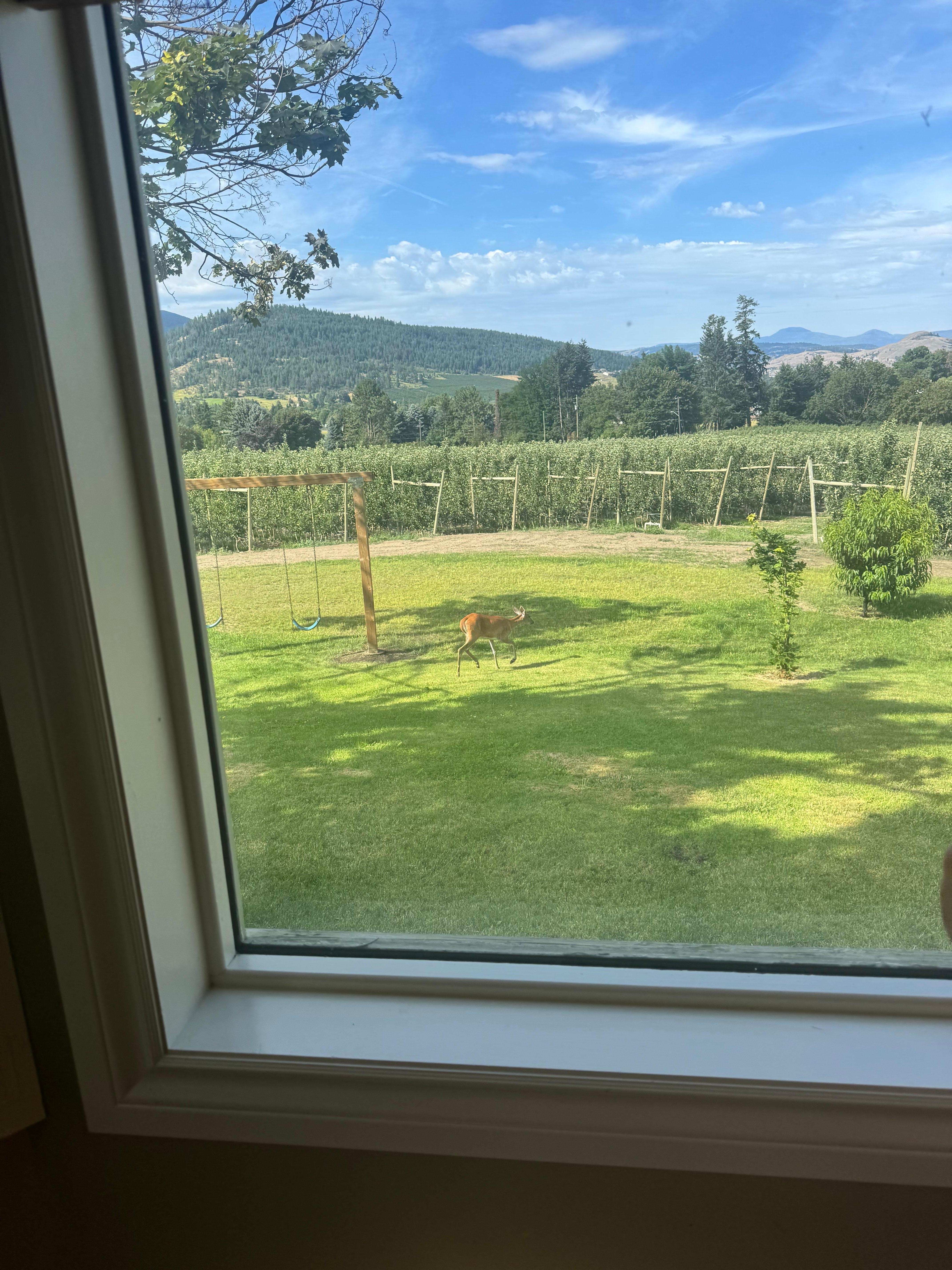 Amazing home on an orchard farm that’s minutes away from downtown Vernon and golf courses. The pictures dont show how spacious this home is until you get in there. Our slow pitch team stayed here, and it was very close to the ball fields. The bedrooms were big, wifi signal was strong throughout the home, and very clean. We brought our 9month old daughter, and had her sleep in the master bedroom., the sound was isolated from the living room music, that she slept throughout the night. Would definitely stay here again.