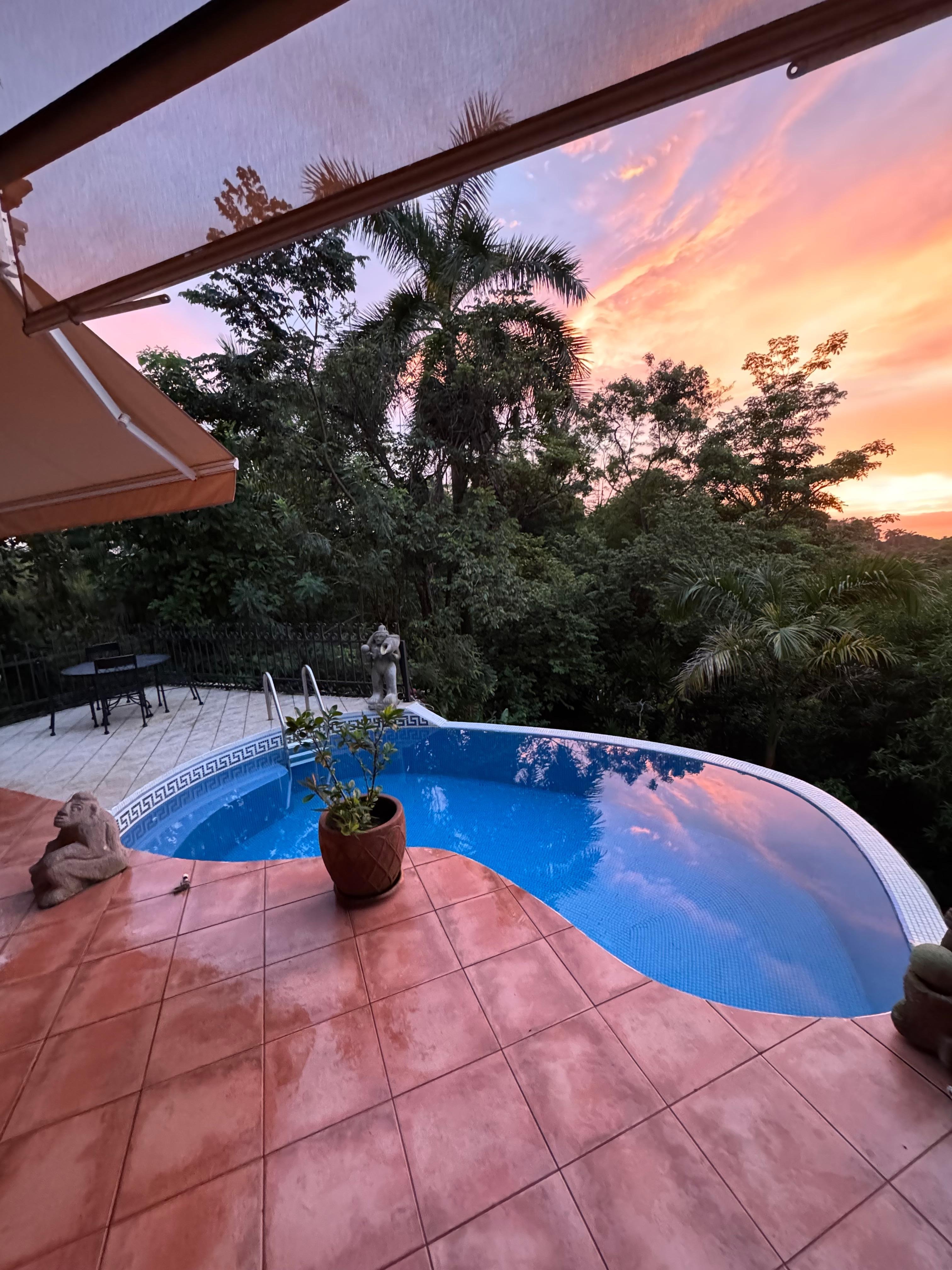 Casa Terraza is a charming 3 bedroom, 3 bath house situated on a mountain with gorgeous ocean and jungle views. Toast spectacular Pacific sunsets with afternoon cocktails on the terrace. Enjoy frequent visits from monkeys, toucans, scarlet macaws, kinkajous, sloths and exotic tropical birds. This is nature lover's heaven. Relax in the hammock to birdsongs and gentle breezes. The house is situated in the quiet Las Brisas neighborhood, a safe, quiet area with several restaurants within walking distance.