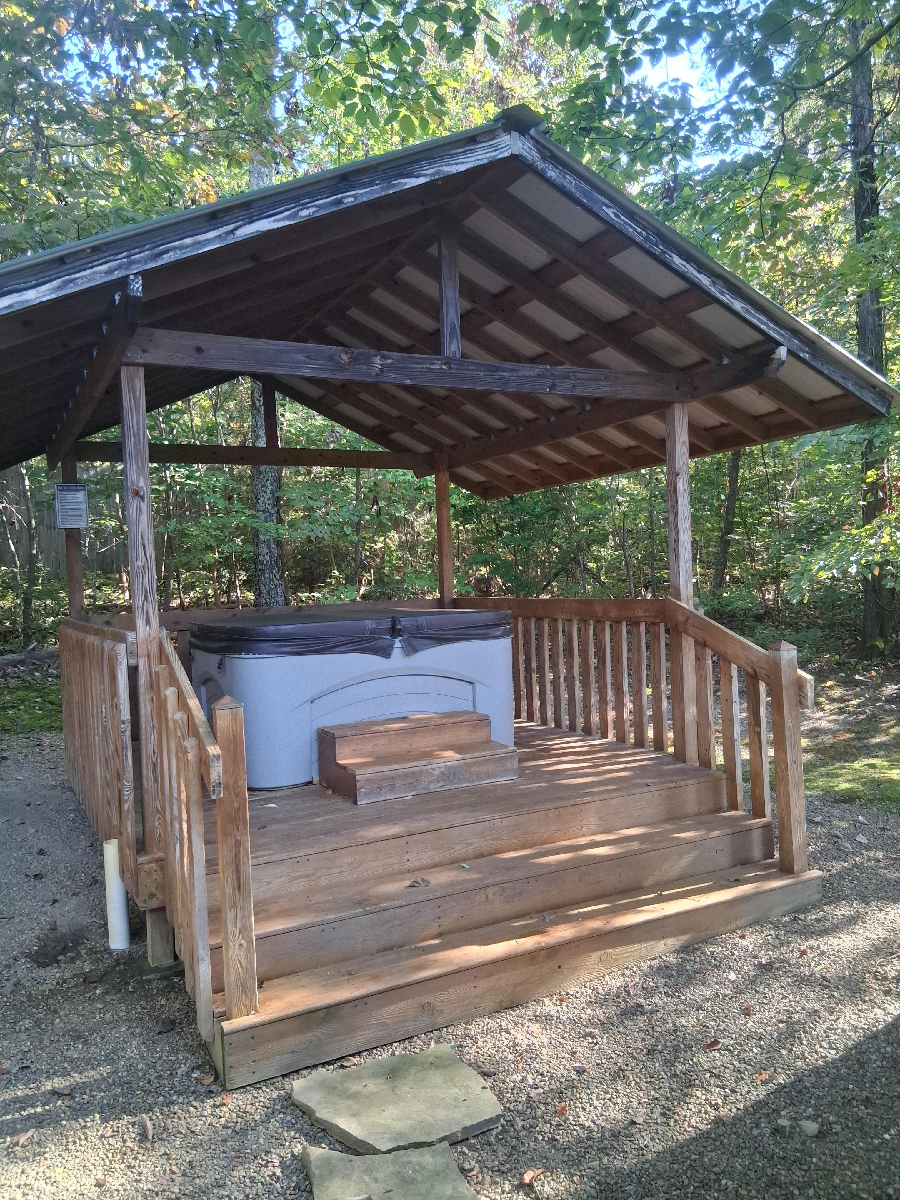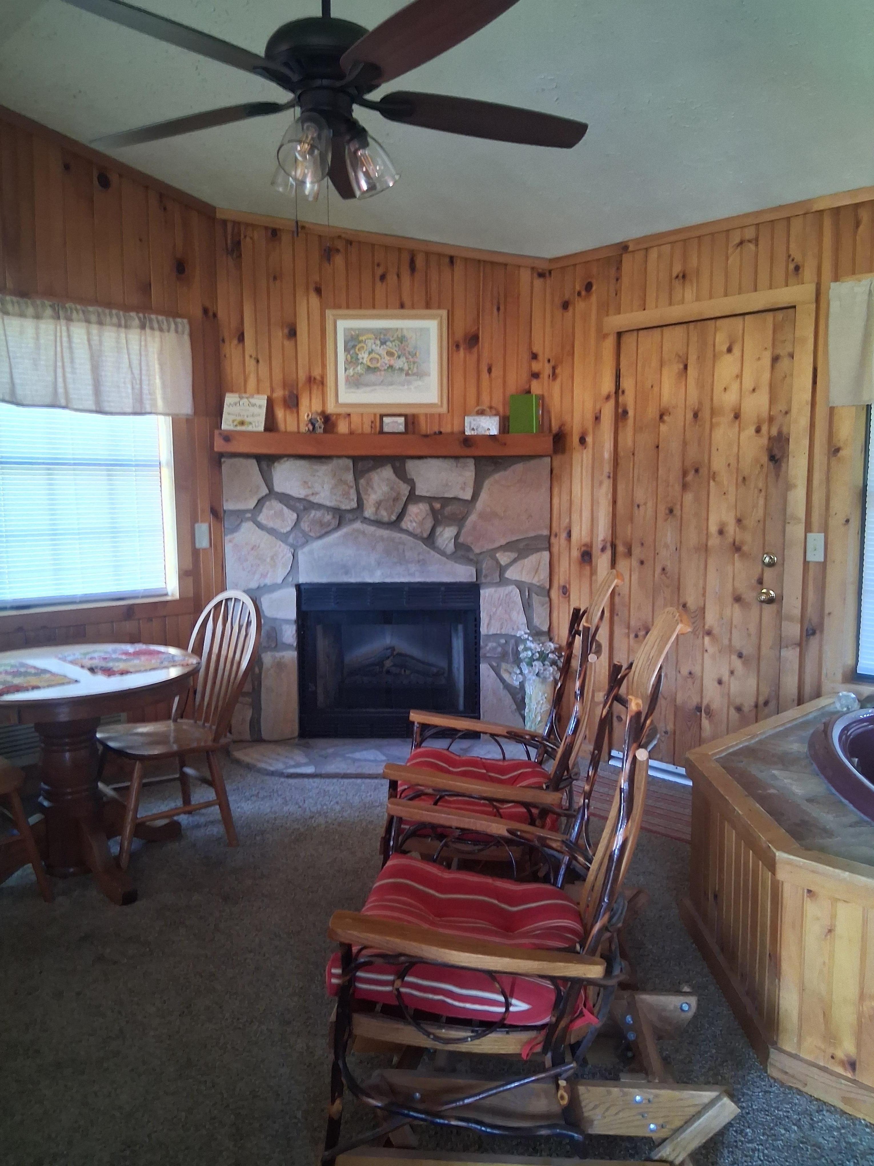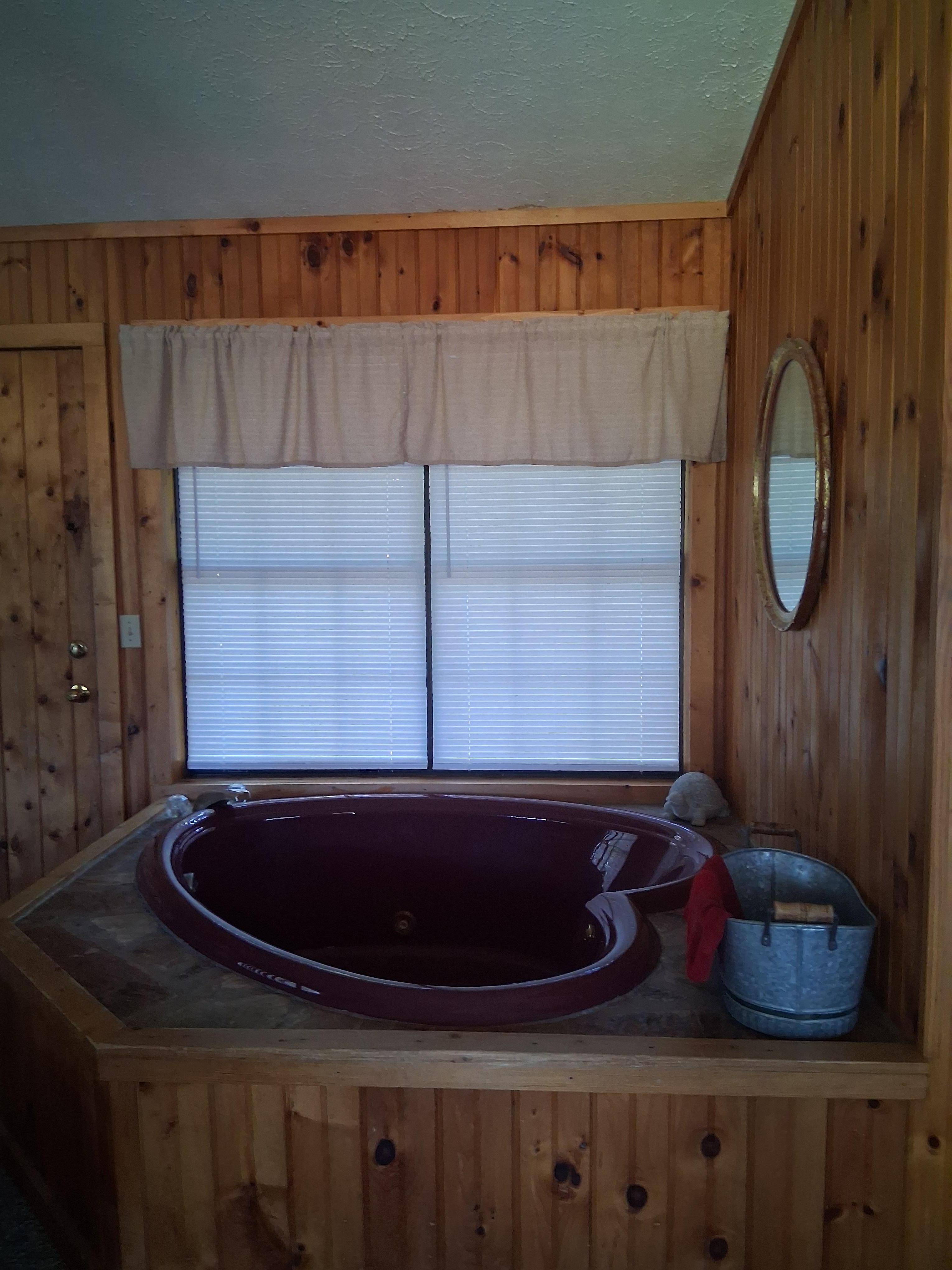 You will be staying in a beautiful one room cabin that is just perfect for couples! This cabin has a queen size bed, full kitchen, fireplace, heart shaped jacuzzi indoor tub, bathroom w/shower, flat screen TV with satellite, rocking chairs inside and outside, a private hot tub out back, charcoal grill and a picnic table! You will truly feel at home when staying in this little cabin. We hope to see you soon!