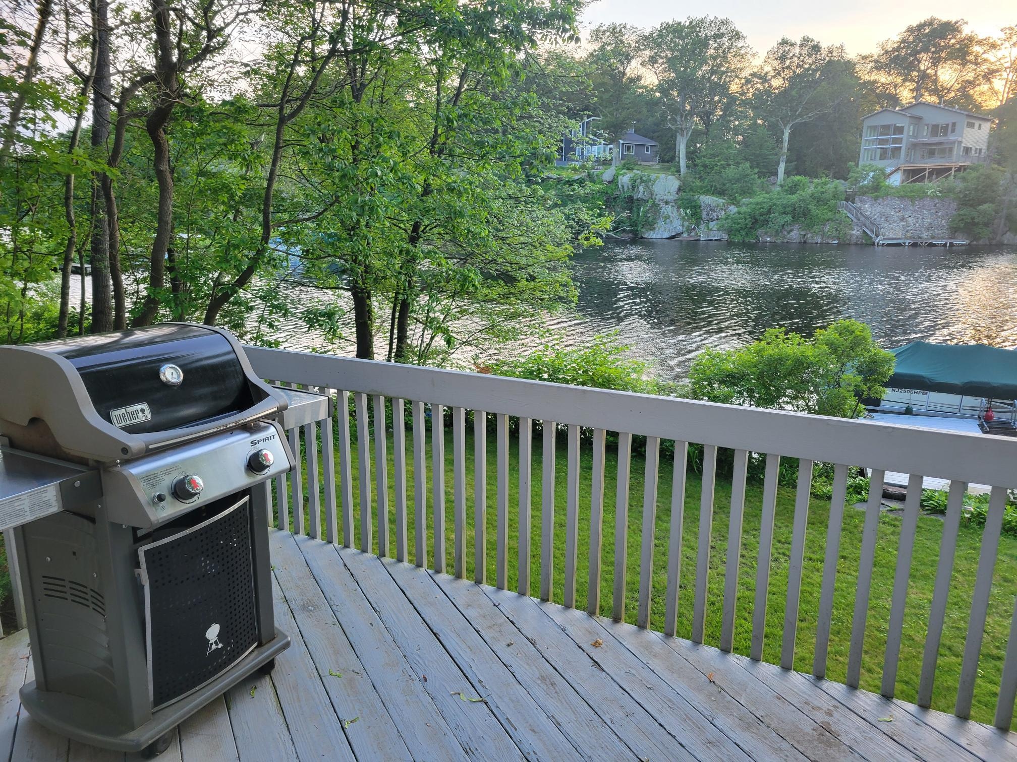 Main floor deck features an outdoor table & chairs, Weber gas grill, Two Cabela's fully adjustable lounge chairs. Downstairs patio features expandable table, chairs, portable chairs for yard or dock as well as frisbee golf, and myriad other yard games.