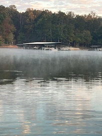 Our home is a unique A-frame style lake house located on beautiful Lake Hartwell. We offer a family friendly home with amazing views. A gentle slope to the lake with a dock for swimming or fishing. A large deck, that can be enjoyed day and night, outdoor grill, plus 2 kayaks. Our home is an open floor plan with an unobstructed view of the lake. The main floor features a fully equipped kitchen with laundry area, dining area for 8, a great room with a sleeper sofa, stone fireplace, a bedroom (king) and a full bathroom. The second floor features a sitting room with a daybed and a second bedroom (king) and a full bathroom.