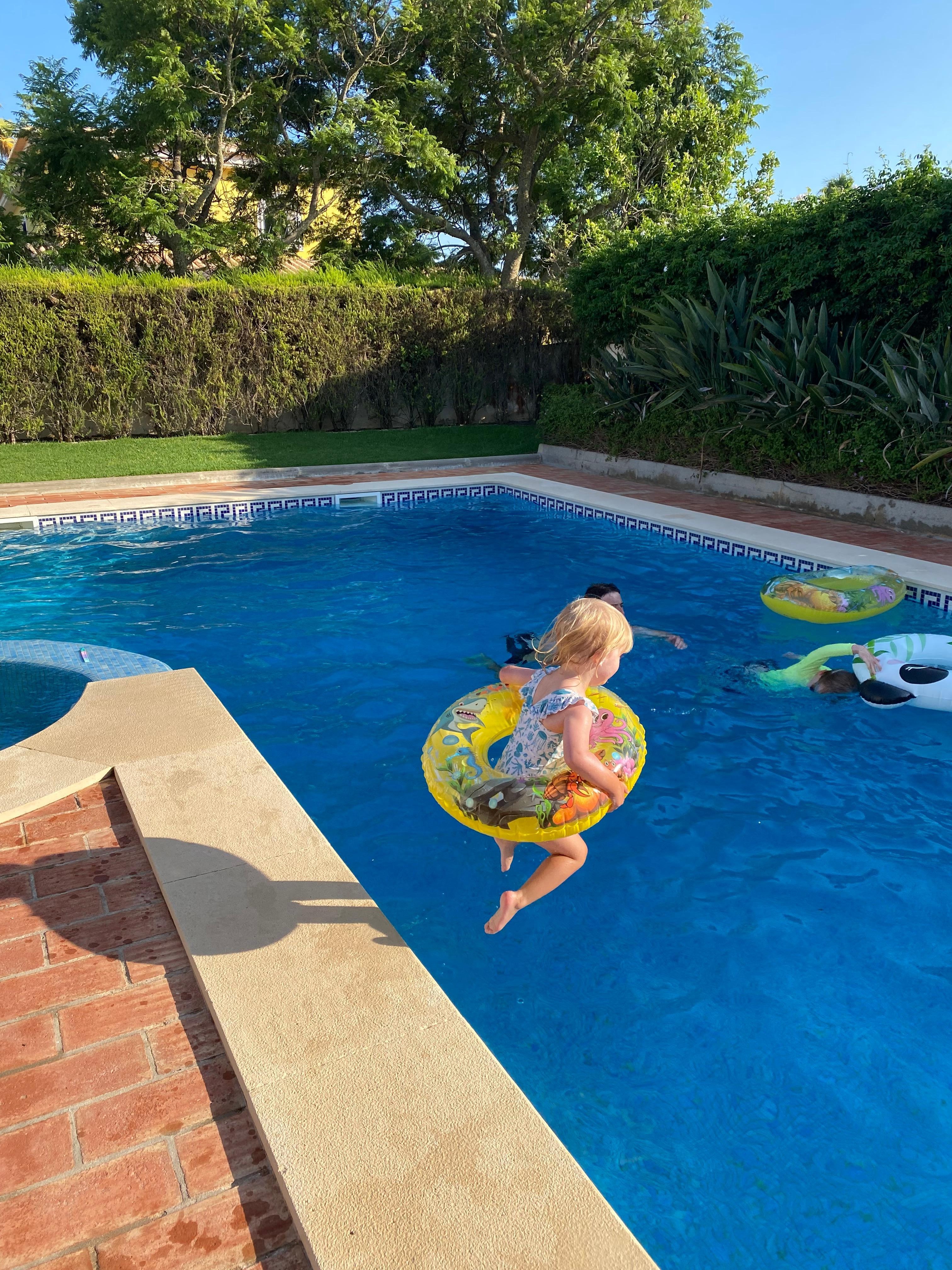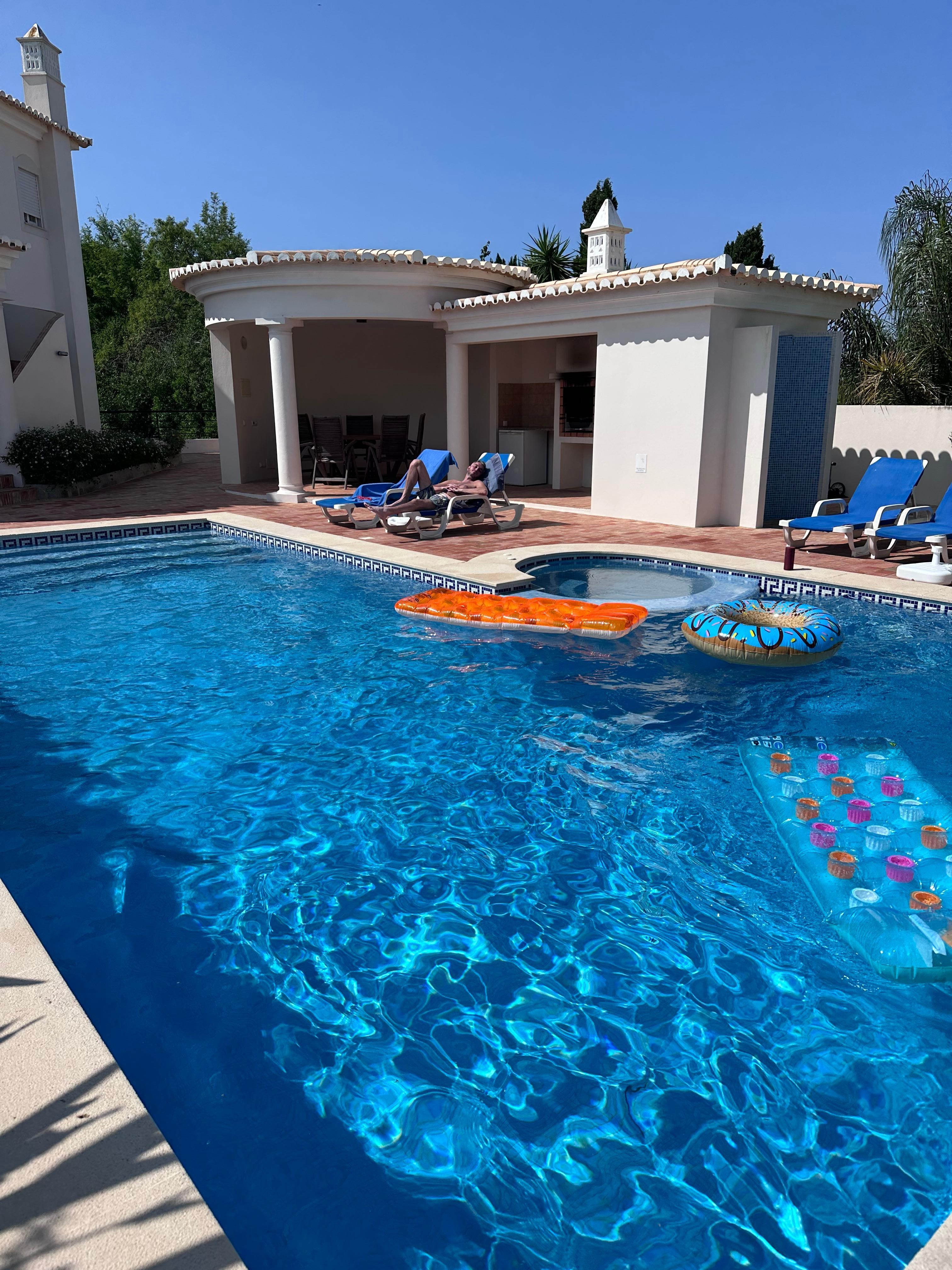 The villa boasts a huge solar heated pool, 32 ft x 14 ft and there is pool shower and lots of surrounding patio space for sunbathing. Beside the pool is an absolutely wonderful BBQ kitchen with table and chairs.