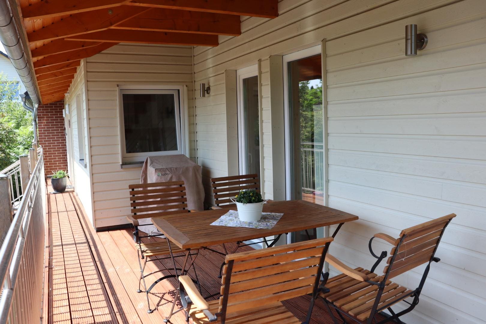 cot, heating(central), terrace(private, roofed, 26 m2), garden(shared with the the owner and other guests, fenced, 6000 m2), bicycle storage, BBQ(charcoal), 2x parking, deckchairs, bicycles available(paid), children's bed, high chair, ironing board, iron, Garden shed