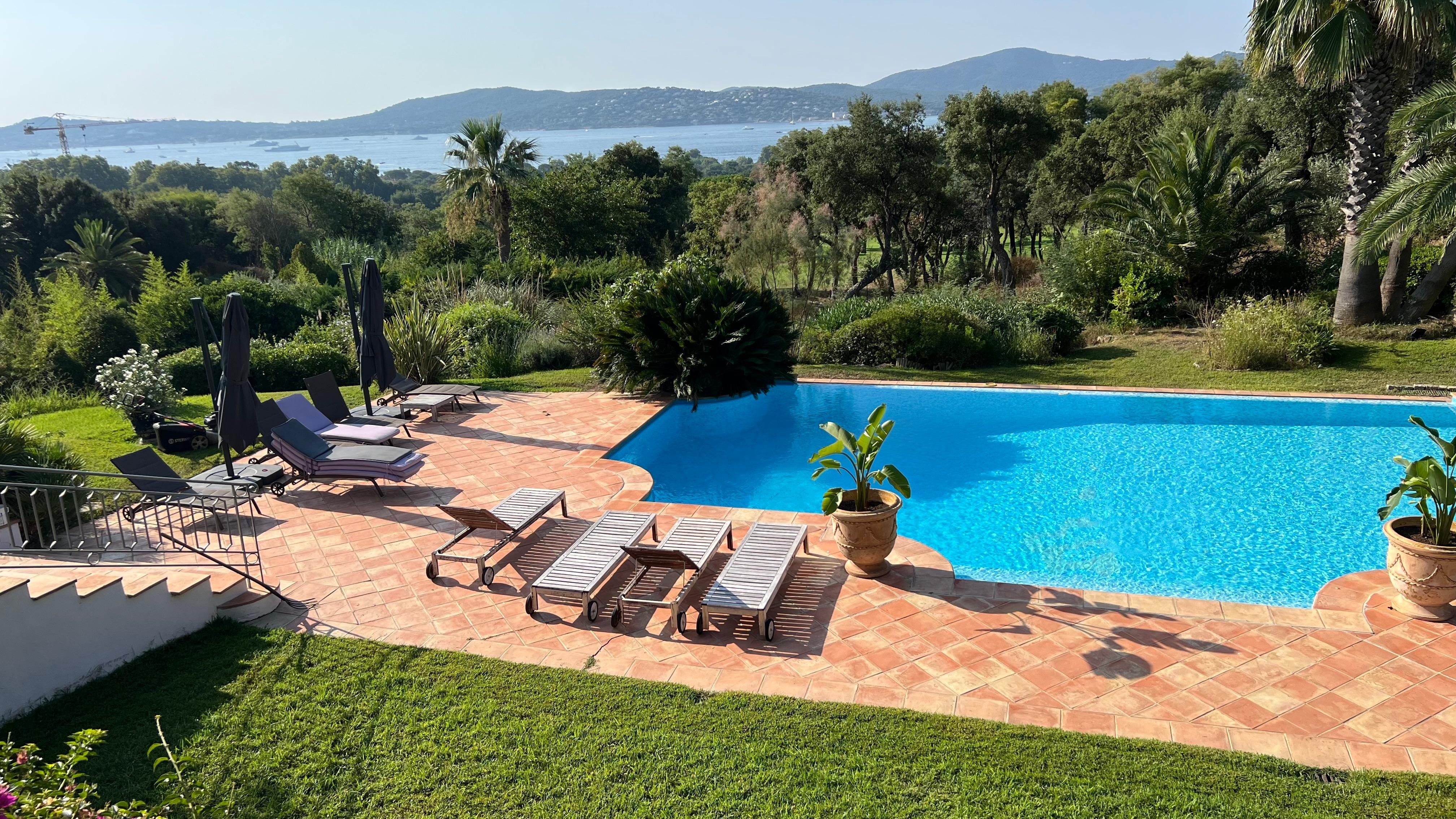 In a calm and preserved environment in the heart of the Gulf of Saint Tropez, the Villa is located on the edge of the Beauvallon Golf course (18 holes).