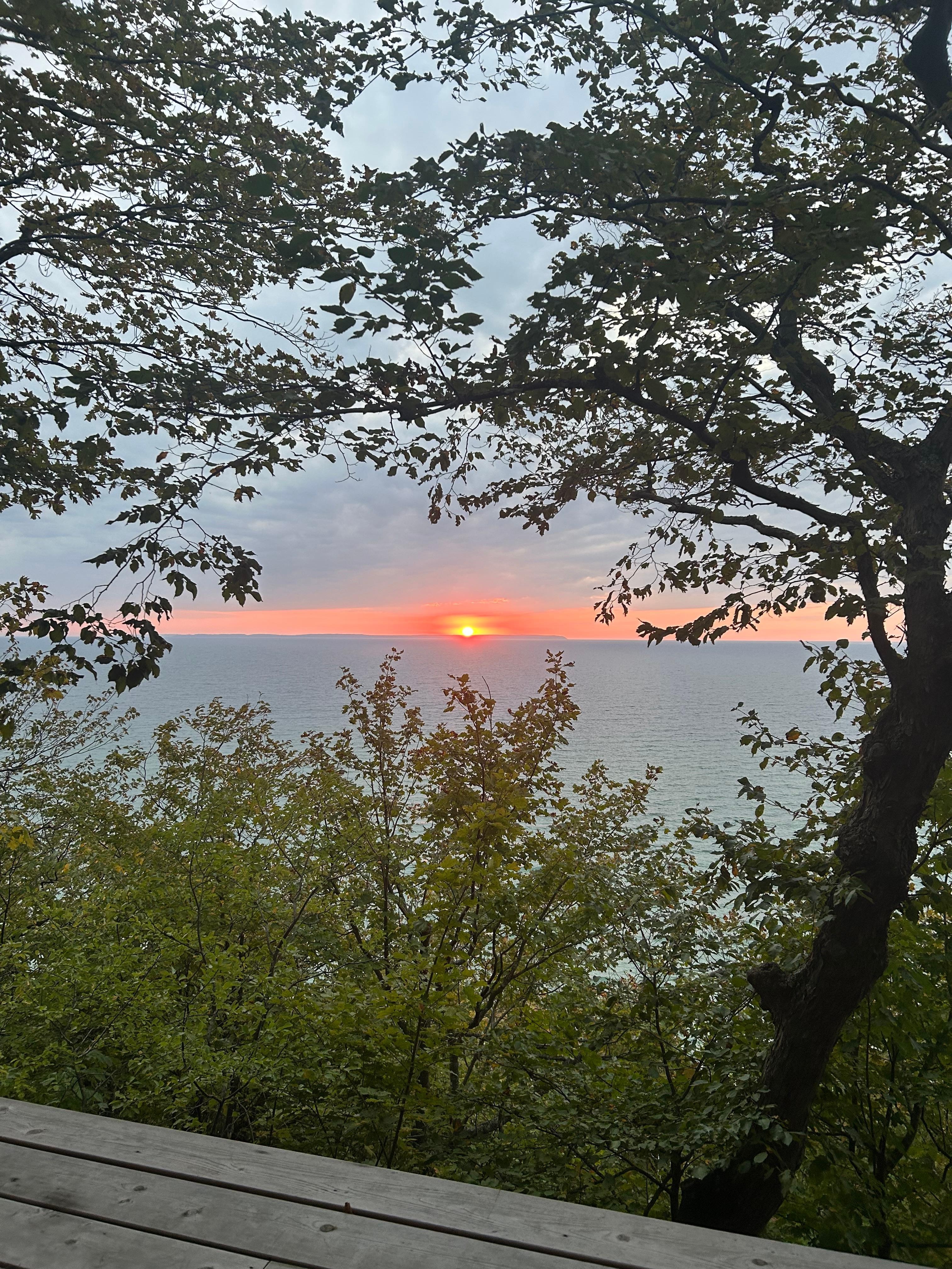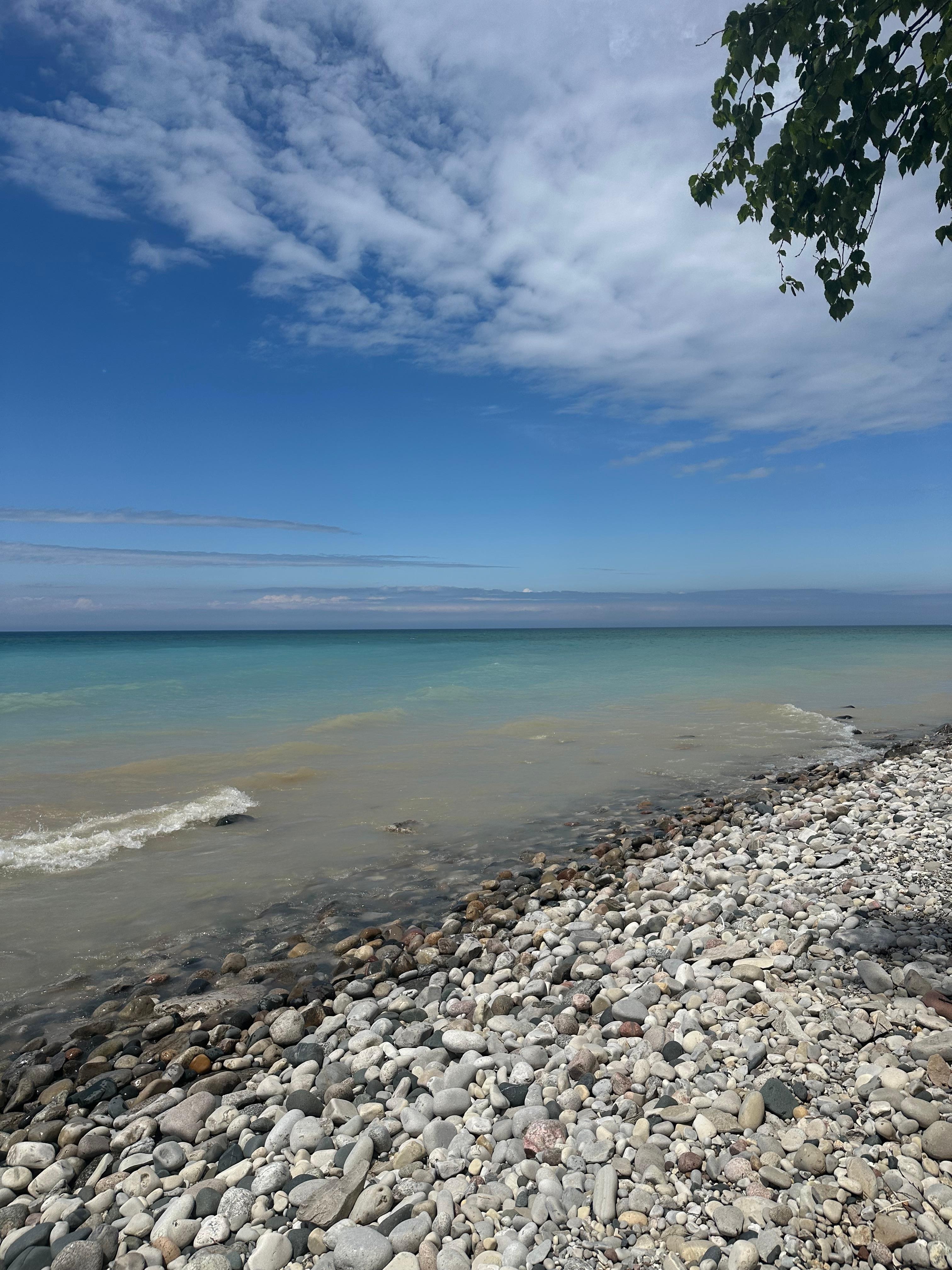 The cottage sits 150 feet above Lake Michigan with views of the Manitou and Fox Islands. 700 feet of frontage and very few neighbors afford an unusual degree of privacy and solitude. A winding path down to the lake leads to miles of shoreline perfect for Petoskey stone and agate hunting, swimming, kayaking, and relaxation.