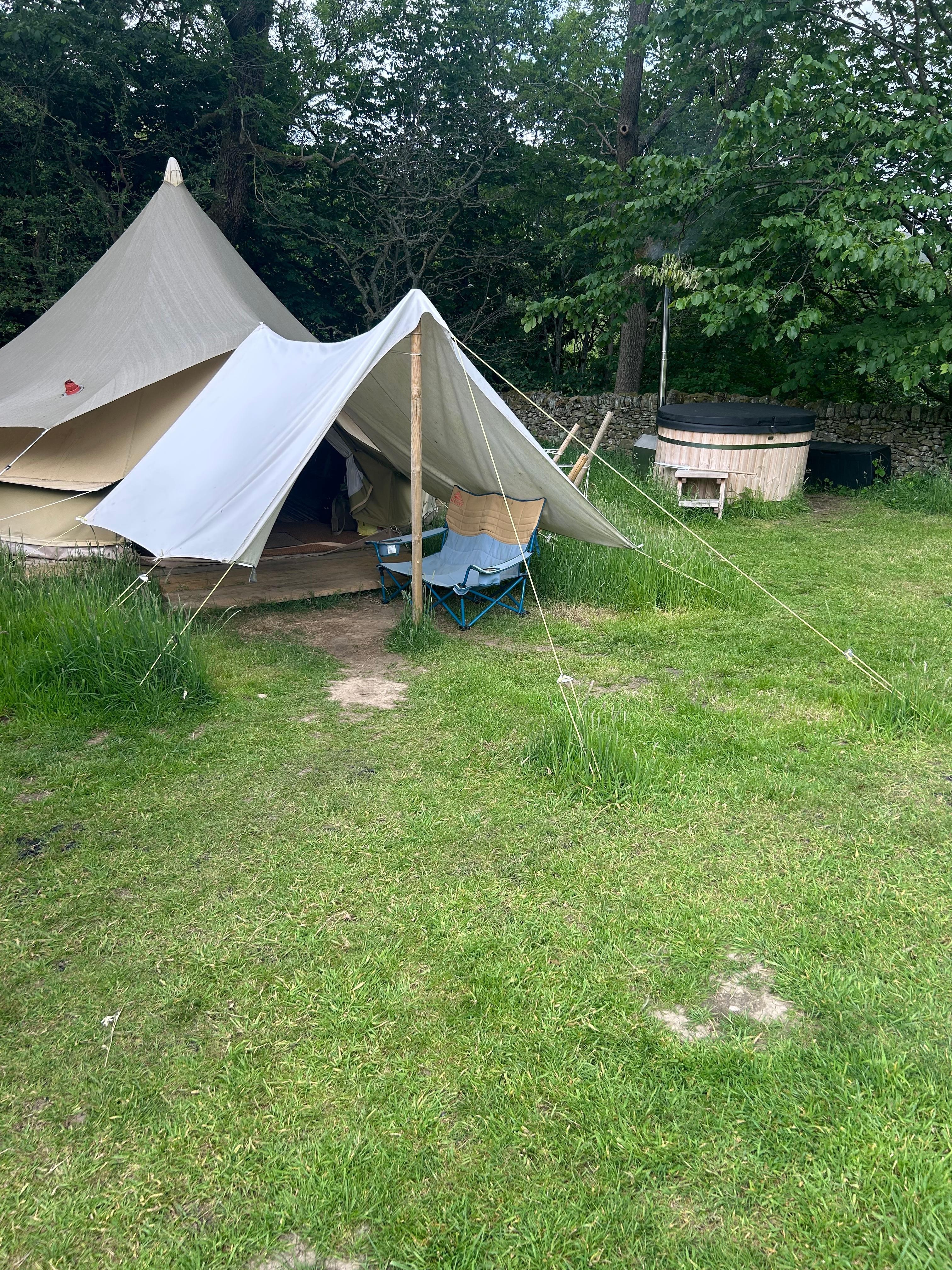Your stay with us is a chance to truly switch off. Each pitch now sits entirely alone in its own private field — offering total seclusion, far from other people and the worries of the world. You’ll soak in your own luxury hot tub beside the bell tent, with no one else in sight. It’s a fully immersive, back-to-nature experience with no compromise on comfort or privacy.