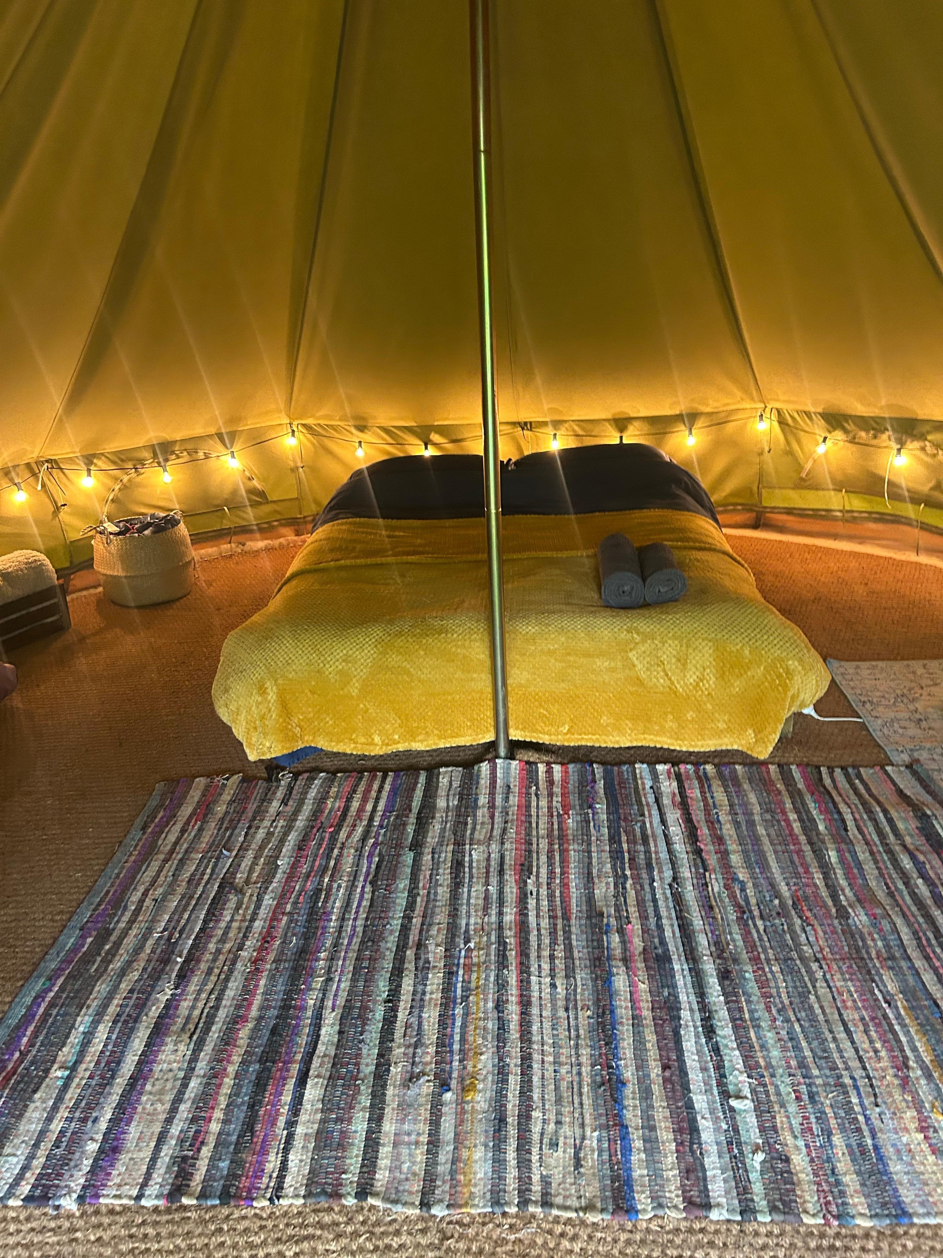In our bell tents you will find all the equipment and facilities needed to experience true luxury, whilst still having the outdoor glamping experience. Set upon raised wooden platforms, our tents are set on a level surface and away from the chill of the ground.