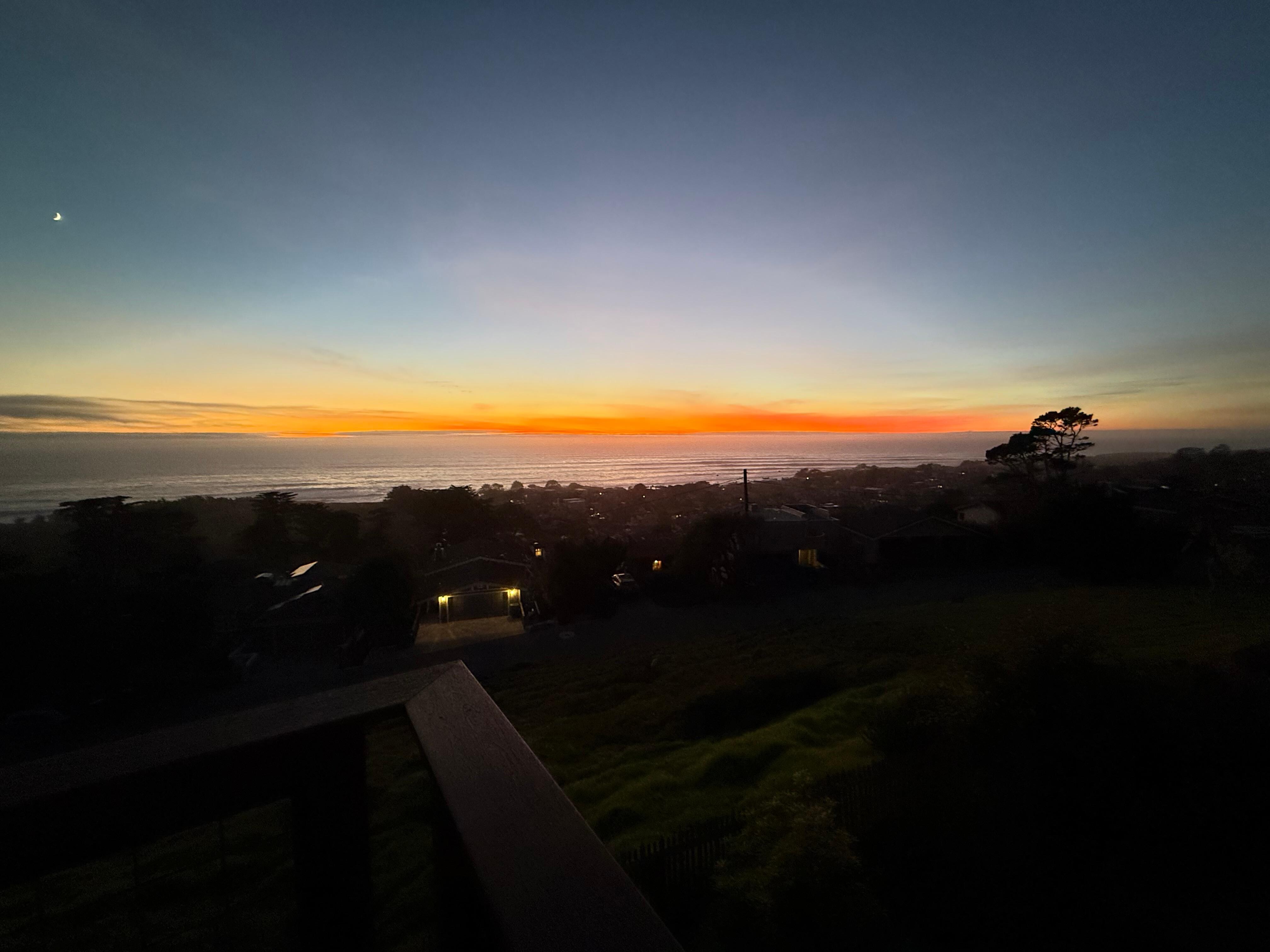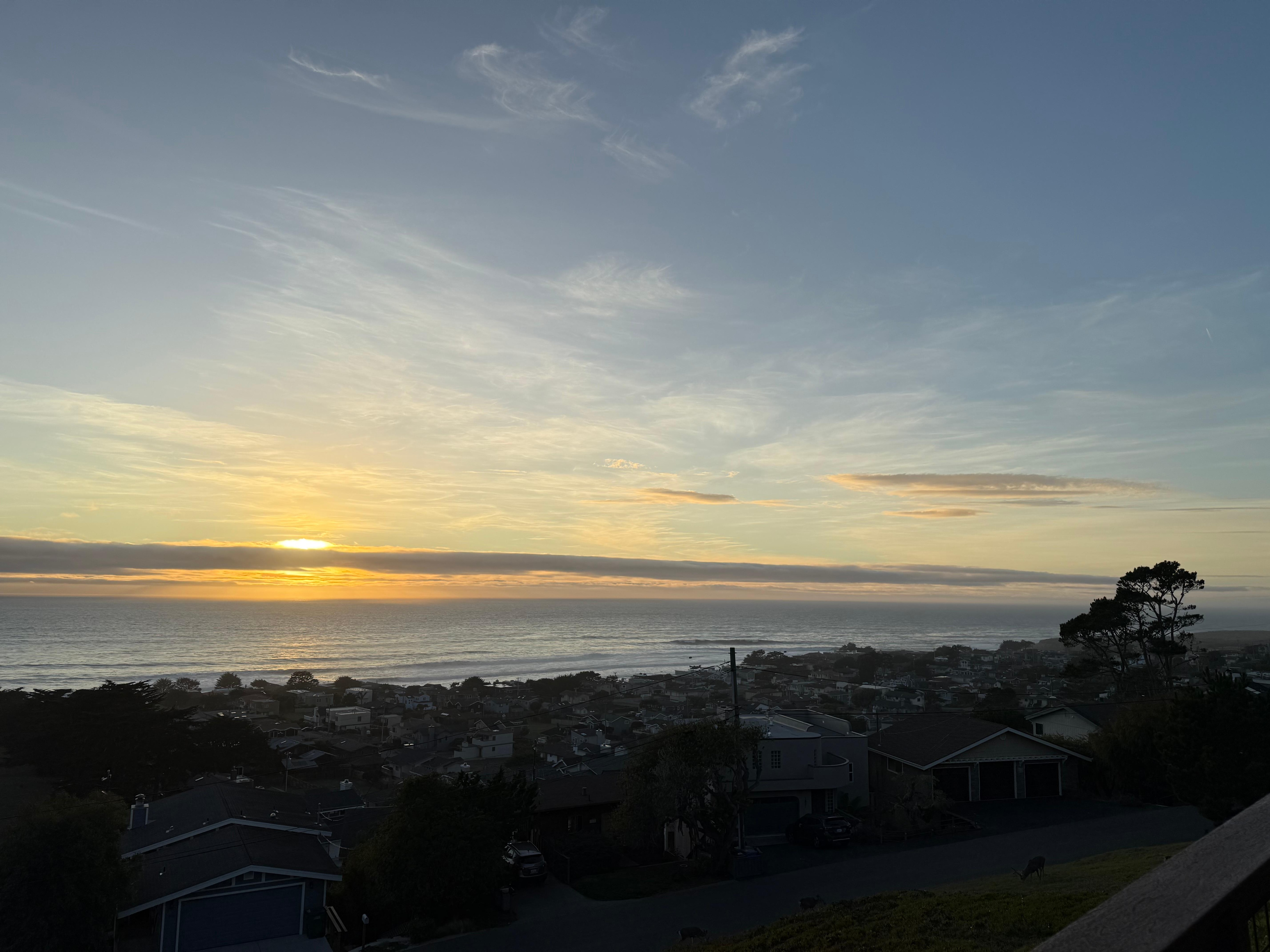 Enjoy the serenity of Cambria in this quiet neighborhood, walking distance from the Fiscalini Ranch Bluff trails and a short drive to town. Modern amenities include WiFi, cable, washer/dryer, two patios (upper deck and lower patio), a gas log fireplace, 3 smart TVs with Chromecast, DVD player, and mesmerizing ocean views. A gas bbq is available for al fresco dining, and an EV Level 2 charger caters to eco-conscious travelers. Exterior security cameras cover the front door and driveway, ensuring peace of mind during your stay. Secure your booking now and enjoy the best of central coast living!