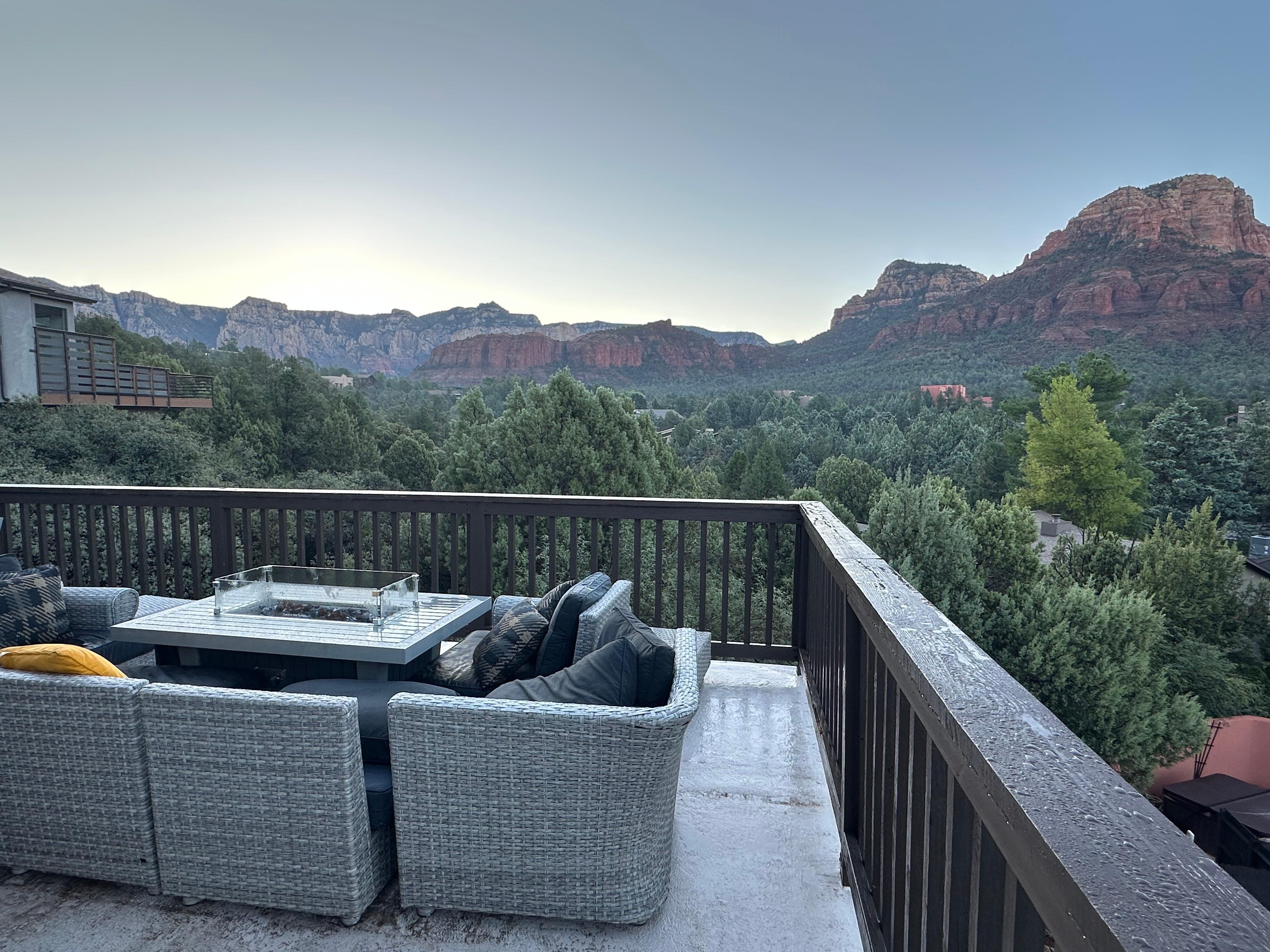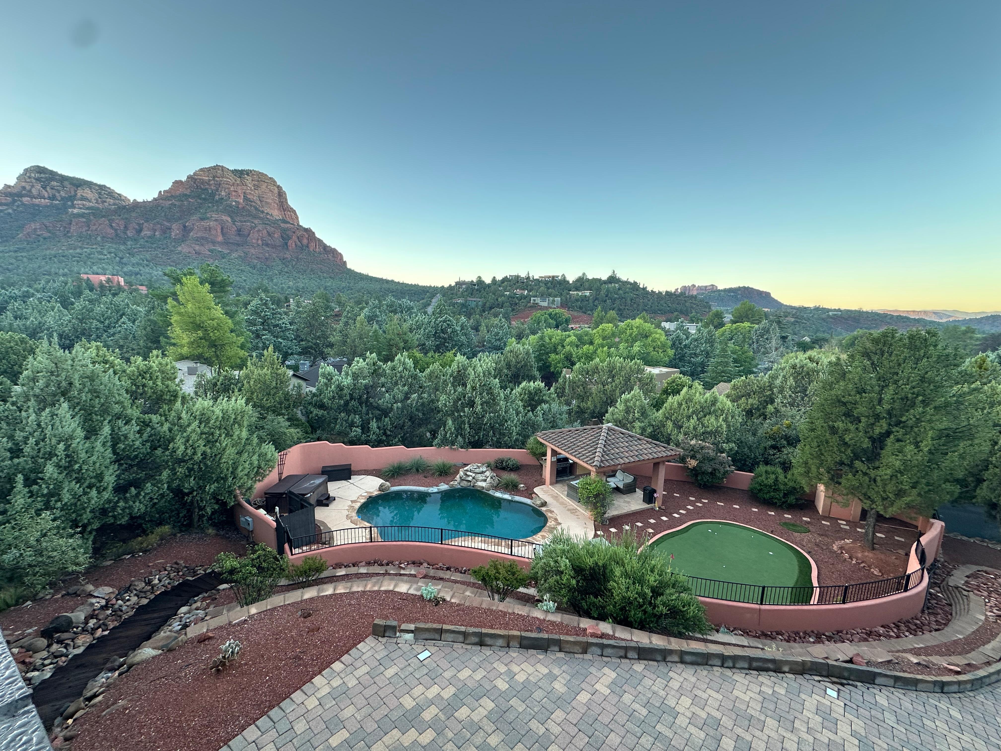Welcome to Sedona! The Doodlebug House combines luxury, privacy, and stunning views. The house has a heated swimming pool (pool heating available for additional fee), spa, fireplace, firepit, 2 BBQ grills, putting green, covered cabana, gameroom with pool table, and stunning red rock views.