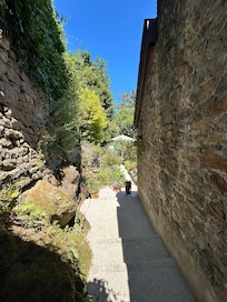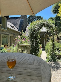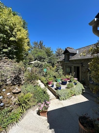Jasmine and Albertine are situated in a beautiful garden setting covering approximately a quarter acre just off the Rue Du Petit Fort one of Dinan's prettiest pedestrianised streets, the garden covers approximately a quarter acre and is on three levels linked by a spiral staircase and stone steps. Each garden has its own special appeal and offers stunning views over the rooftops of Dinan and to the hillside beyond.Restaurants, bars, creperies, theatre, specialist shops, bus and train stations all close by. Lively historic port with boat hire and waterside walks. Sandy beaches, Dinard (airport) St Malo (ferry port within 30 minutes drive. Don't forget the Fete des Ramparts, a medieval feast of Drama and entertainment held every two years , the next one is from 21st to 23rd July 2023 Please contact the owner for a discount on Brittany Ferries Crossings.