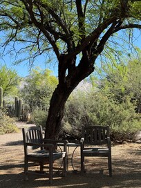 This lovely jewel started life as an artist studio set on over six acres of lush desert along with the main house. Built in the late 40's over the years it has slowly been transformed into a casita that provides privacy, comfort and warmth to all. There is a wonderful wash that runs along the property and you can sit on the bluff overlooking the old saguaros, mesquites and all the other desert vegetation. This bluff looks to the east so mornings are beautiful and quiet.