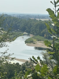 To the south and in the pretty private wood surrounding the house, breathtaking views of the Loire.