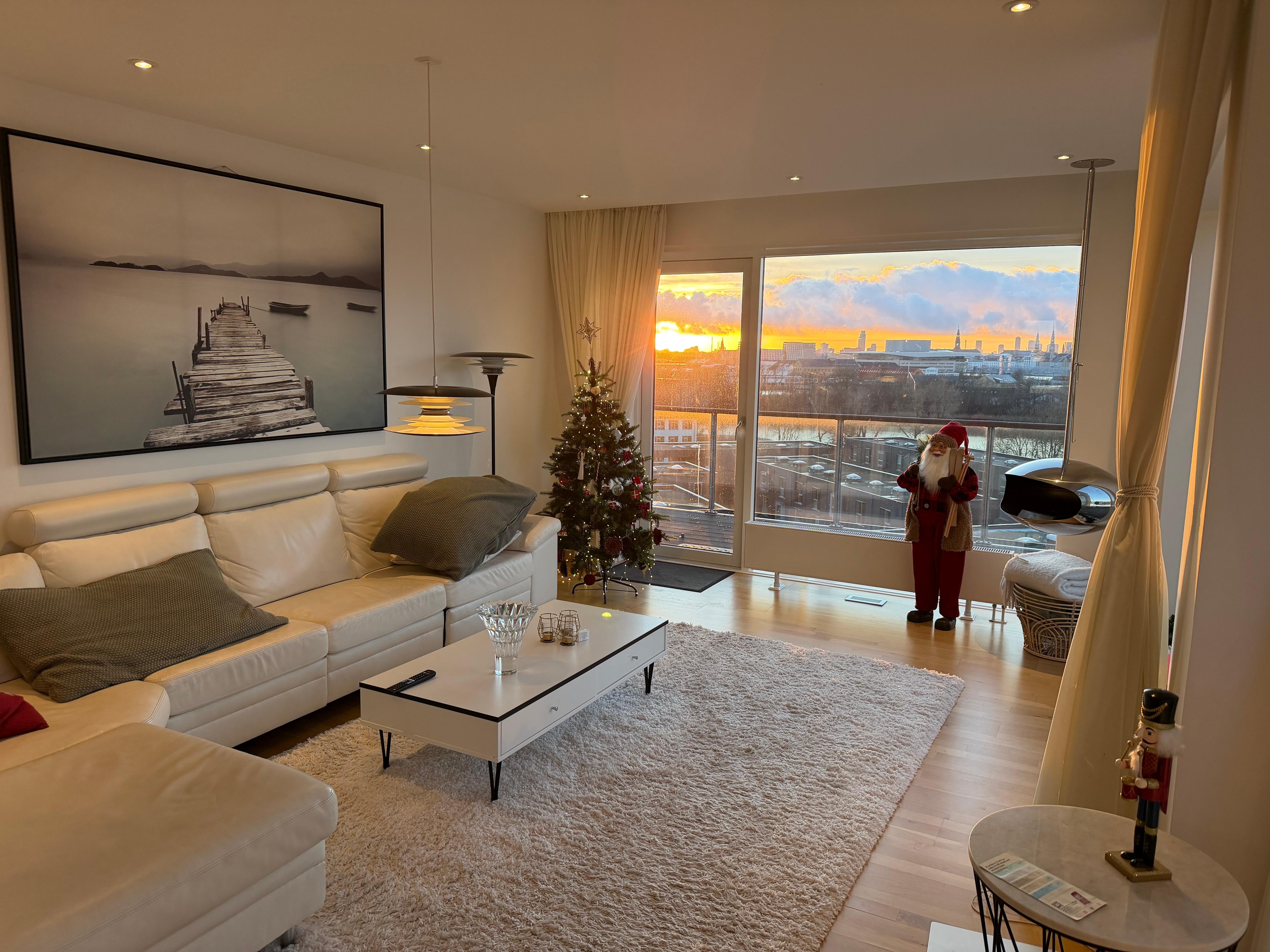 Penthouse, with skyline view of Copenhagen, view to Tivoli fireworks, view to Noma, next to Reffen and Copenhill, 15 min to the airport, 7 min by bike to Nyhavn. Luxury accessories, inside bio fireplace, large teressa with bbq grill overlooking the queens palace and the marina. Sauna on the premises with access to swim in the ocean.br>