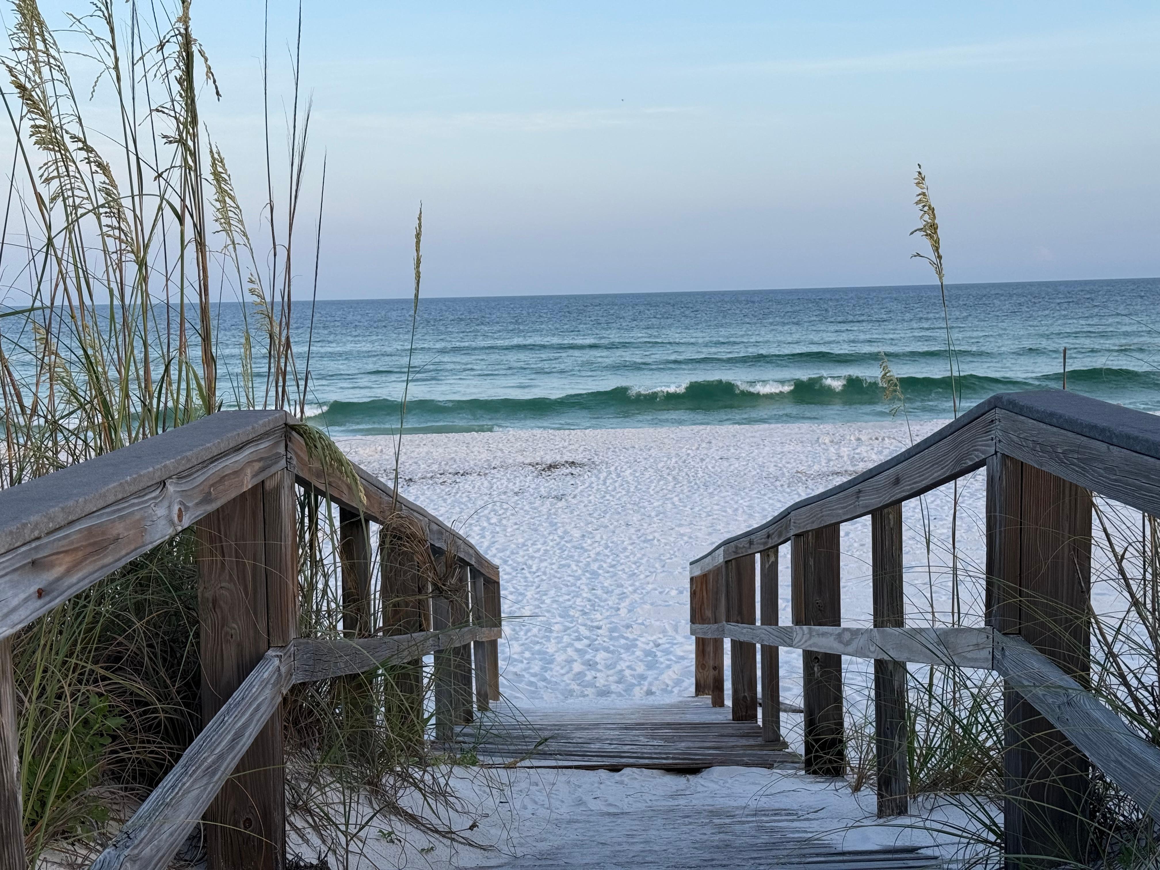 Just a few steps down from the deck to the world's whitest sand beaches. A few more steps over the dunes and you are dipping your toes into the Gulf of Mexico. Sip coffee watching dolphins in the morning, run and play in the surf and sand, relax with a beverage at the water's edge, or grill while watching the sunset. Notice the picture of a page within Garden & Gun (April - May) which captures White Sands Townhomes with a yellow arrow pointed at 479 Fort Pickens Rd in particular!