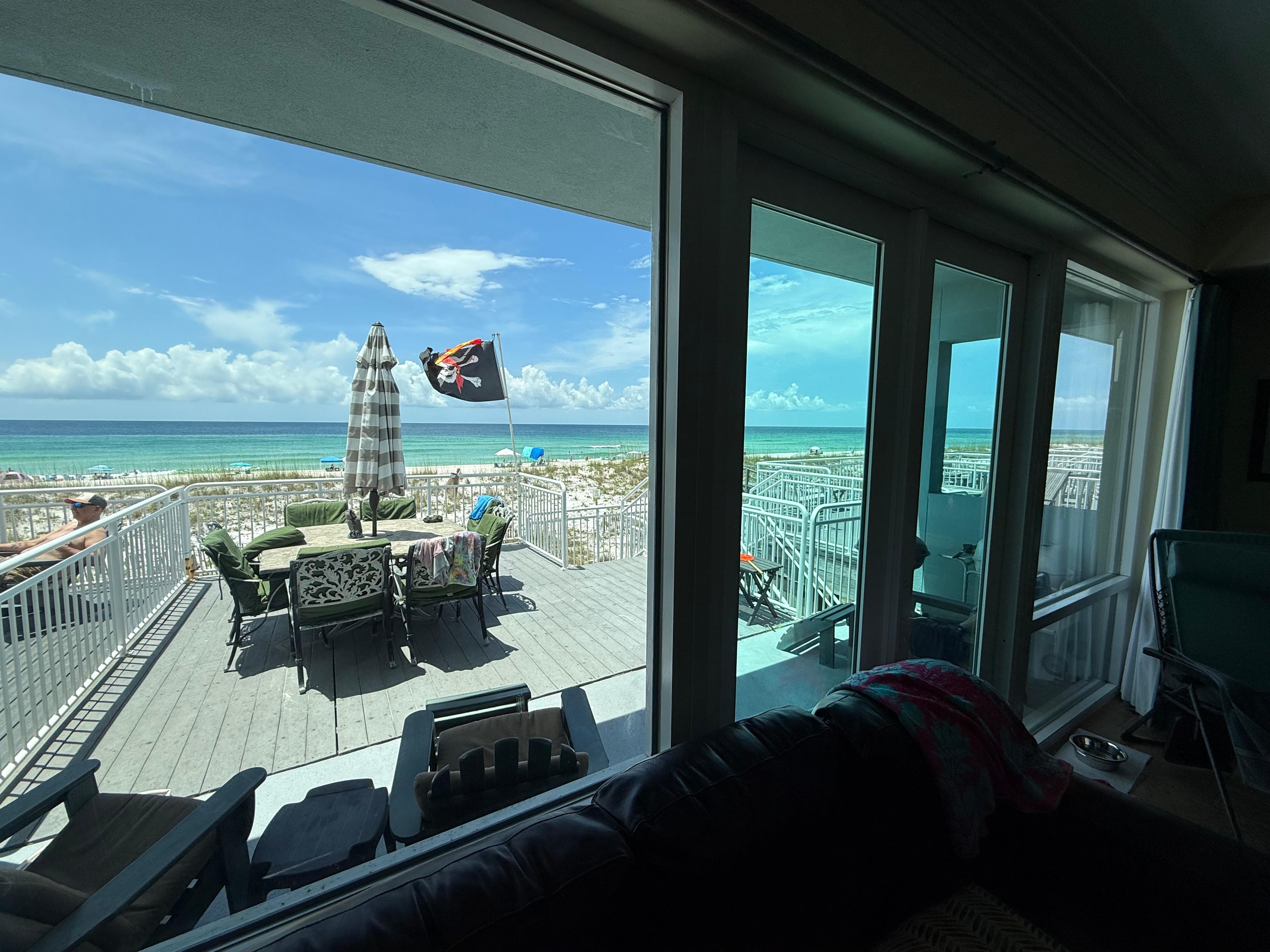 Here you have a private garage on the first floor, plus 2 floors of living space above. On the second floor of three, you have a kitchen outfitted with granite counter-tops, a living area w/access to your own deck overlooking the sugar white sand beaches, dining area, full bathroom, and bedroom 1 of 4 with access to a private balcony. On the top floor which is the third floor, you have the master bedroom with a loft featuring a Foosball table, with access to the master bedroom private balcony plus adjoining master bathroom, as well as bedrooms 2 and 3 with access to a shared balcony, and the 3rd full bathroom.