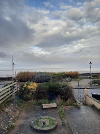 Amenities: Gas central heating. Electric oven and hob, microwave, 2 x fridge/freezer, dishwasher, coffee machine, washing machine, tumble dryer. 48” Smart TV, Nintendo Wii, selection of board games and WiFi. Fuel and power inc. in rent. Bed linen and towels inc. in rent. Travel cot and highchair available on request. Off-road parking for 1 car. Courtyard with furniture and rooftop terrace with sun-loungers. Two well-behaved pets welcome. Sorry, no smoking. Shop 0.2 miles, pub 0.3 miles, beach 0.1 miles. Note: Additional parking in car park 100 meters (£4.40 per day) or free on sea front off season. Note: There are 8 steps to the front entrance, none to rear entrance. Note: This property accepts a maximum of 6 adults