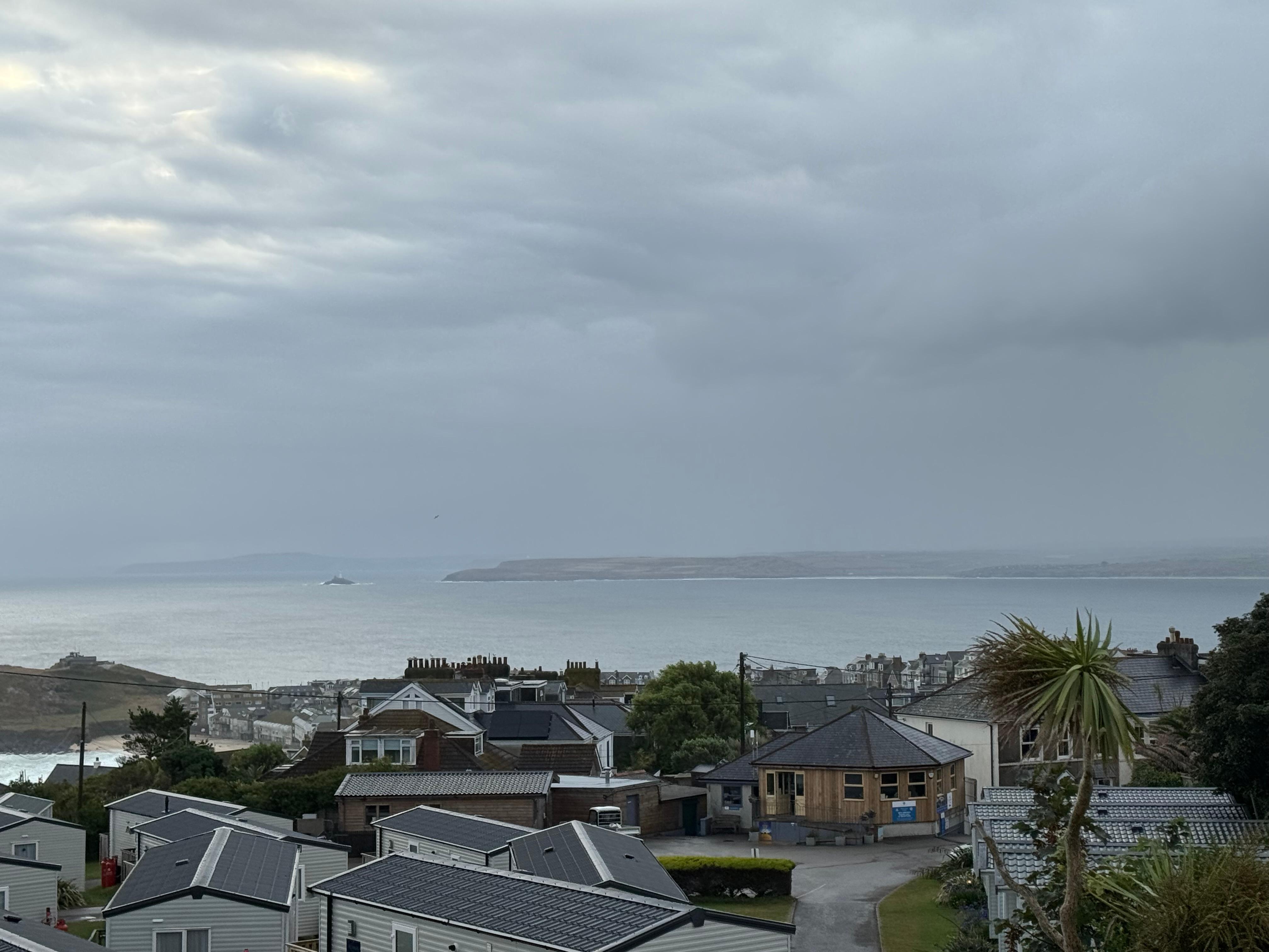 New 3 bedroom house with incredible 180 degree views over Porthmeor Beach, The Island, Godrevy Lighthouse, and 25 mile views up the north coast of Cornwall, weather permitting. Less that 10 minutes walk to Porthmeor Beach, and all that St Ives has to offer. Purpose built (2023) holiday let built with guests in mind, this one of two properties that takes advantage of the amazing views with reverse level living. Enter on the ground floor, with 2 parking spaces and free EV charging point, to 3 bedrooms. The master ensuite with king size bed, and shower room, 2nd bedroom with 6 ft zip & Link superking (can be singles), and the 3rd bedroom with 2 singles (can be 6ft zip & link superking. And family bathroom with shower over, wc and basin complete the ground floor. Stairs lead to the 1st floor open planned lounge, dining and kitchen. Large sliding doors lead from the lounge onto the large balcony. So enjoy the balcony to watch the sun rise in the morning or dine alfresco as the sun dips in the evening. The first floor includes kitchen with double oven, induction hob, microwave, fridge freezer and the 3rd shower room with wc and basin. Light the woodburner for cosy nights, and watch the storms pass by. The decked ground floor includes a charcoal built in bbq, and warm water shower to rinse of the sand on return from the beach. Heating is provided by air source heat pump, underfloor heating, plus triple glazing. This property is one of a pair of semis and can be booked as a pair to sleep 12 in total with 6 bedrooms/6 shower rooms. Great for two families who wish to holiday together, but have their own space. Other property is Vrbo property reference 11425284. This property lets Saturday to Saturday during peak weeks and short breaks available outside of July & August.
