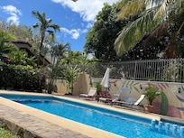 This property offers all the commodities of your own home, set conveniently in Tamarindo's residential area within walking distance to Tamarindo Beach and the town's center. You can find restaurants, shopping, beach activities, pharmacies, grocery store all within walking from the condo. Casa Ela #1 offers more privacy compared to other condos in the center of town as they are individual homes, only 4 total and share a pool and common area. You will hear monkeys and wildlife just outside your windows in the trees and Casa Ela far enough away from the town's lively nightlife that you won't know you are in Tamarindo's center.
