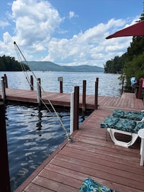 The two screen porches offer you views of the lake rarely seen on houses on Lake George since the house sits so close to the lake. The 60 foot docks provide lots of sitting and sunning space and room for kayaks and water sports. The ample parking at the top of the hill allows room for 3 or 4 cars if necessary.