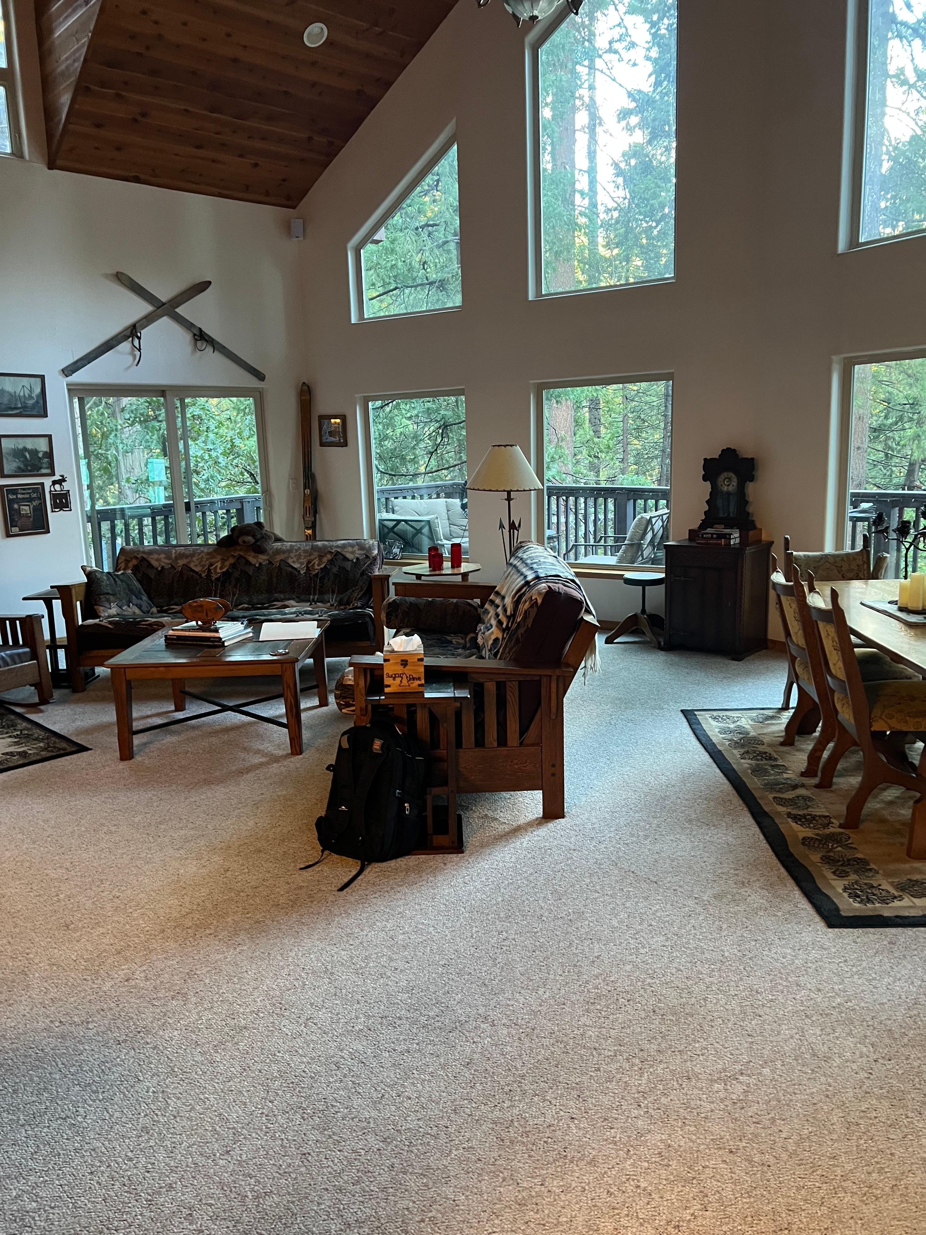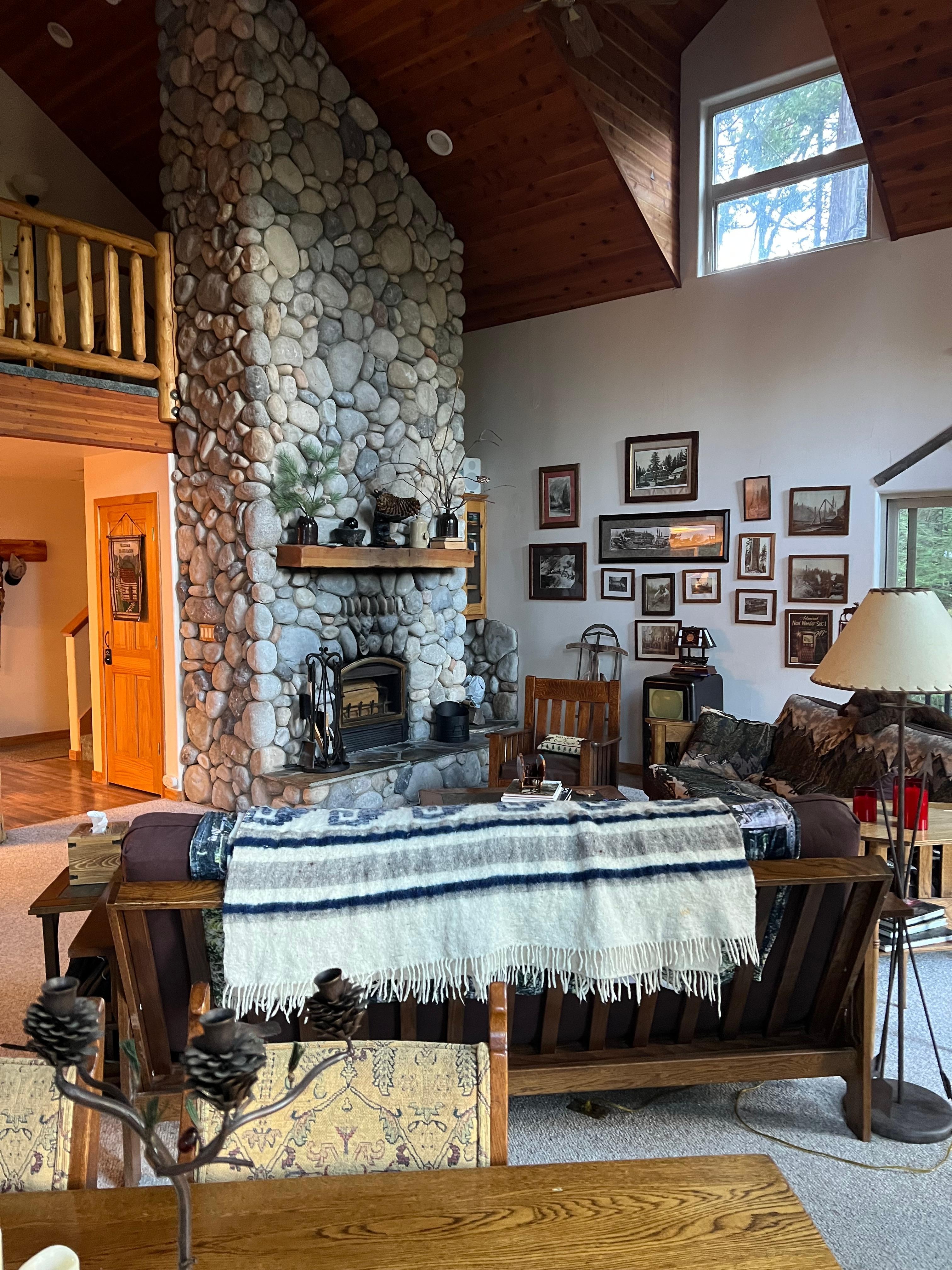 This is our sugar pine gem. . My name is Tony (818*681*8049) please feel free to call or text me with any questions you may have.) I would like to welcome you to the beautiful and amazing fresh air of the Sierra National forest amongst 100 and 200 foot cedar and pine trees in this almost 1800 Sq. Foot, 2 story chalet style cabin. It is located in the amazing and serene community of the historic Madera Sugar Pine Lumber Company, which was the largest, most successful lumber operation in the west. Sugar pine is just below Fish Camp on the way to Yosemite just minutes from the park entrance. This beautiful 2 story chalet style cabin sits high amongst the tall majestic Pine, Cedar and Fir trees. Open the back door and step out into the forest, a comfortable seating area, and gas fire pit provide the perfect ambience for a dinner on the front deck or just to relax among the tall trees and enjoy the peace, quiet and forest scents. The cabin is located 8 miles north of Oakhurst off of highway 41, just 7 miles from the southern entrance of Yosemite National Park and 20 minutes to Bass Lake. The upstairs master bedroom and a loft has views of the pines, and has a private 3/4 bath and a wall mounted t.v. A childs room with an amazing skylight over a twin bed shares the upper floor. The main floor offers a fully stocked kitchen with dinnerware, appliances, and all the amenities needed. The second bedroom with a 50 inch wall mounted TV, the second bathroom and the great room. The dining area has a table for 6, breakfast bar for 3 and wood burning fireplace. The living room has 2 large futons plus one additional rocking chair and a 75 inch television. The bathroom with with walk in shower and full indoor laundry room is also a few step away from the dining area. All TVs offer Dish TV with all the movie, sports and on demand channels, Wifi, and wifi calling are included, and local calls only on the land line.