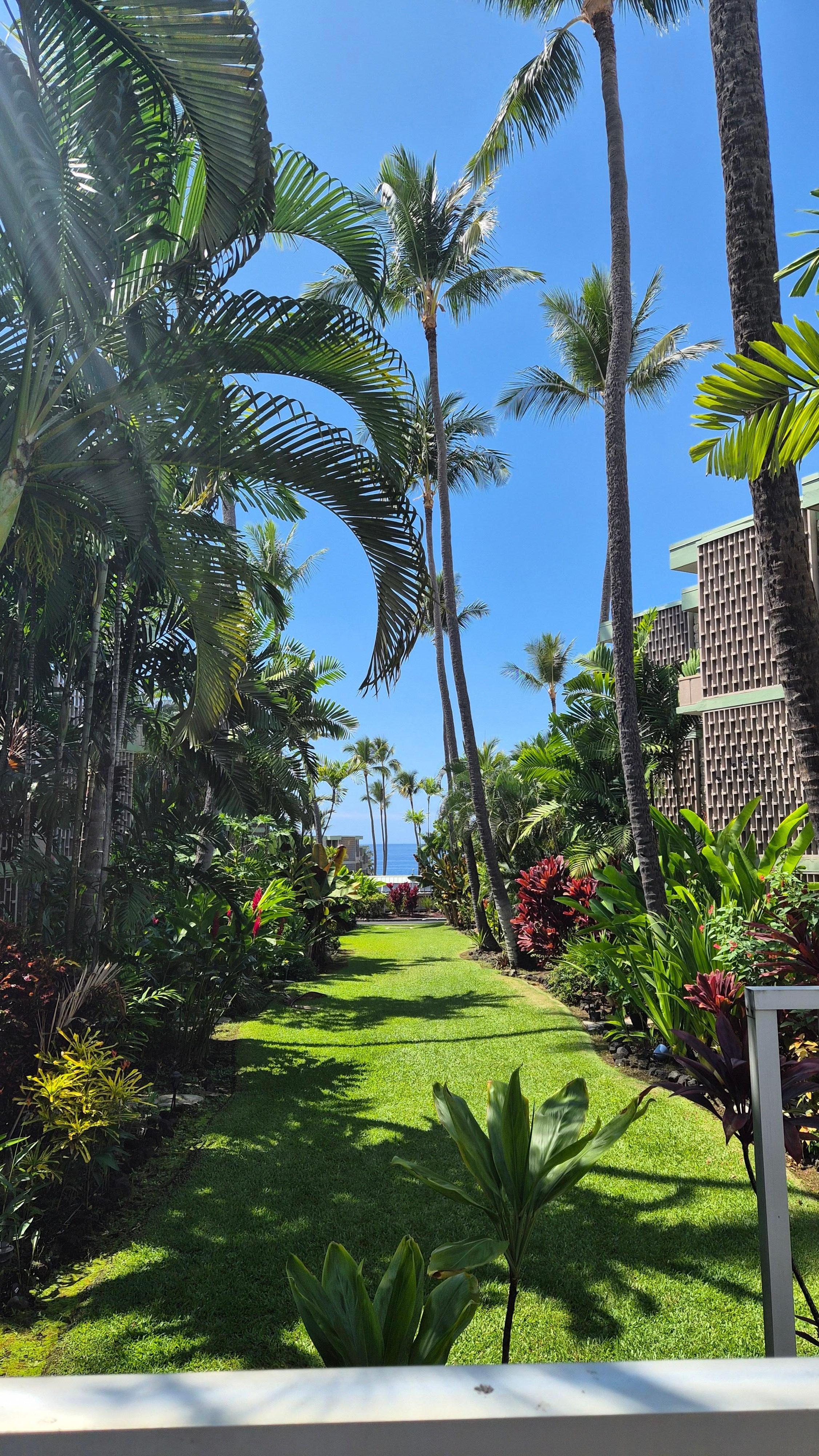 Upgraded garden view unit with a peek of the ocean. A short 2 minute walk to the waterfront seating area.