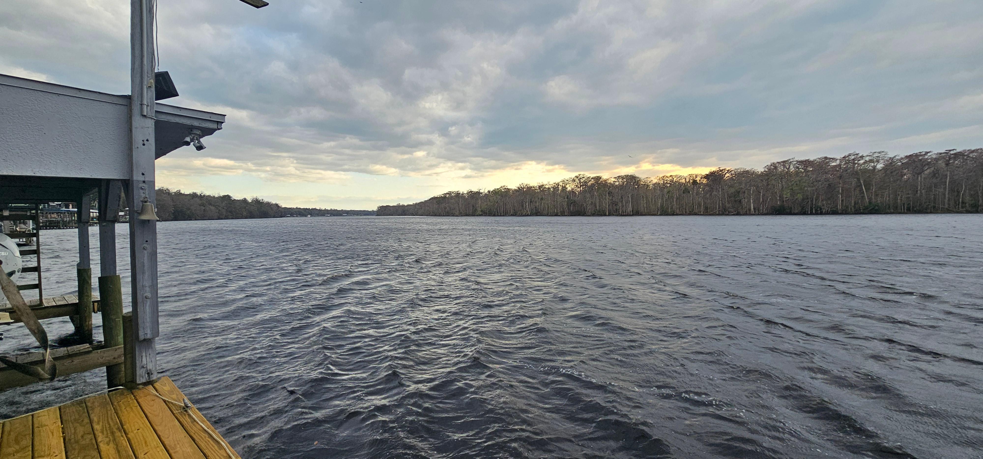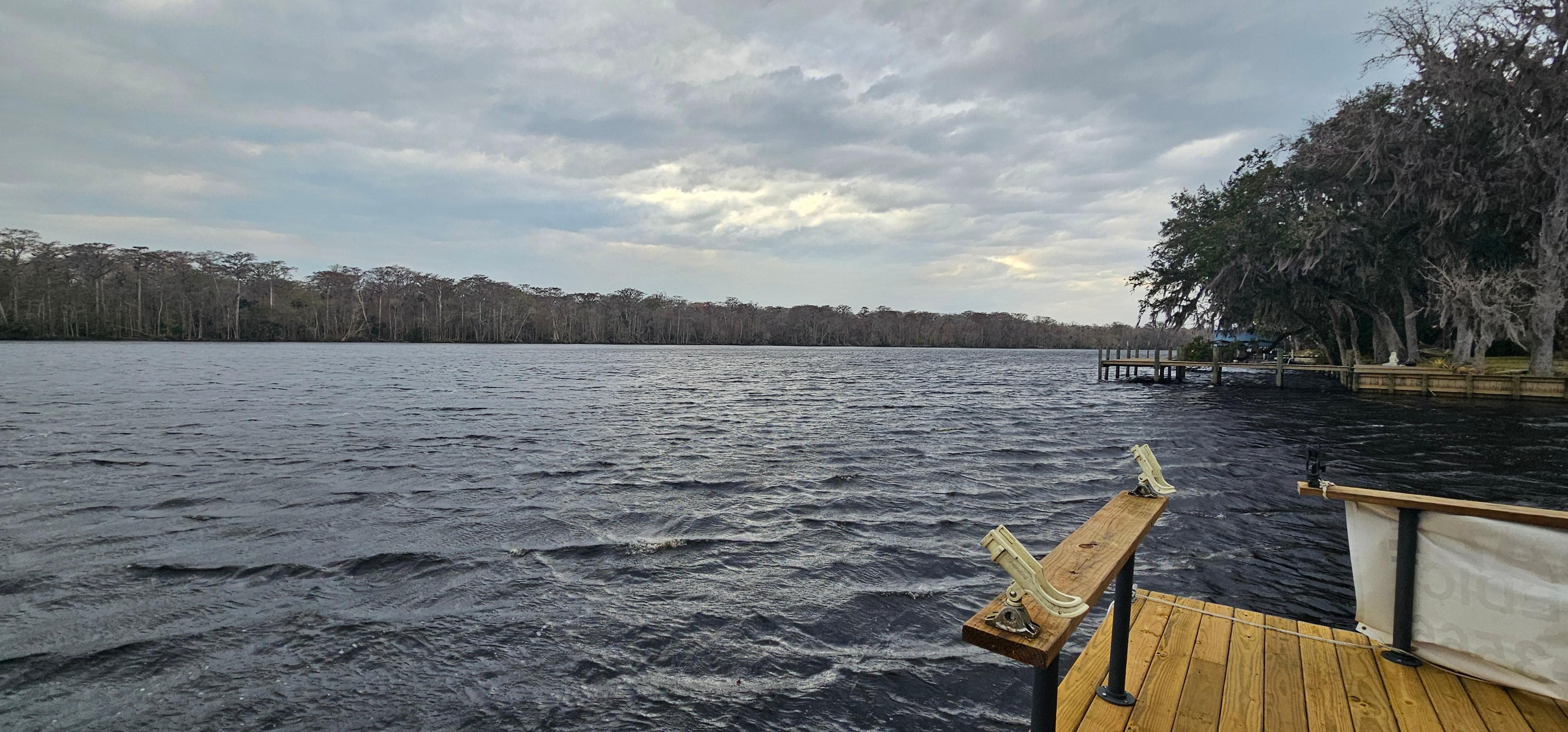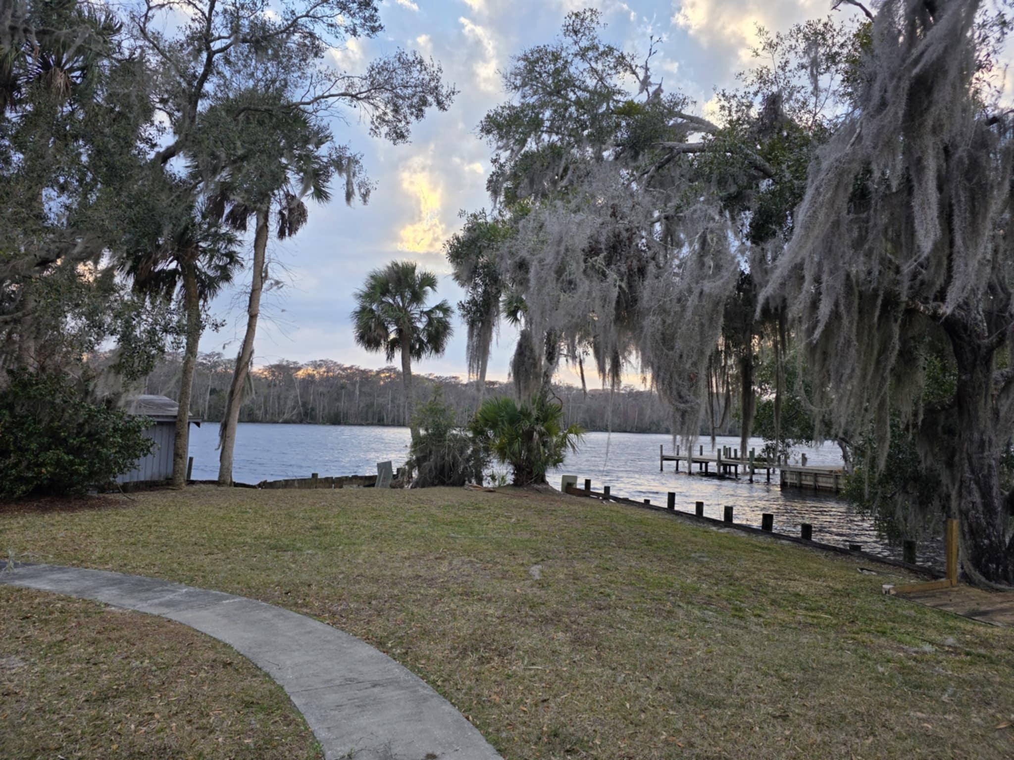This is a very quiet property, in a nice neighborhood. The best is the location on the river. You look across at the beautiful ocala national forest. There are lots of herons, anhingas, cormorants and eagles. Also pelicans at the evening. We do not fish, but you can see fish jumping all the time. If you go boating on the river, there are not many houses or structures, and you mostly are looking at nature. The house is large, with excellent showers, but lacks good pots and pans, etc, and also has no smoke detectors. Although it says non smoking, the prior guests smoked and it took a full month for it to mostly go away.