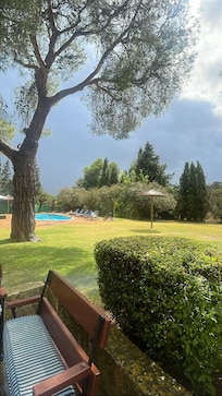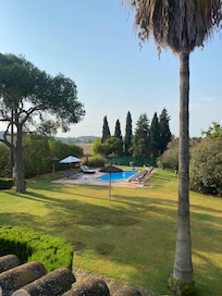 The property is lovely, really huge.Gorgeous rooms all with attached bathrooms. All rooms have air conditioning. And it's beautiful it really is. The surroundings are peaceful and theres some really beautiful views.The property is managed by a 5 star hotel so there is access to 24/7 service and help (we had a water leak and it was resolved within an hour of contacting the reception desk). All the staff are very friendly, bilingual and very lovely. The pool was a little smaller that it looked but really great.Someone came to check and clean the pool daily.The kitchen is equipped well for breakfasts but its not quite big enough to cater for a dinner of the amount of people that can stay and is missing some equipment. We managed with the BBQ - more or less.However, the whole property needs a little more maintenance to live up to the claims in the advert. There is no fitness center.The pool cues have no pads, the table tennis bats are warped. The children's play area equipment is broken including a child's bicycle that had no brakes and two flat tyres. It's also in a yard out back with no shade. The BBQ is just about holding on. We also felt like there was a lot of chairs missing, we had to move chairs around to sit together and we were only 14 people and not the maximum 21. The pool could use more shade.