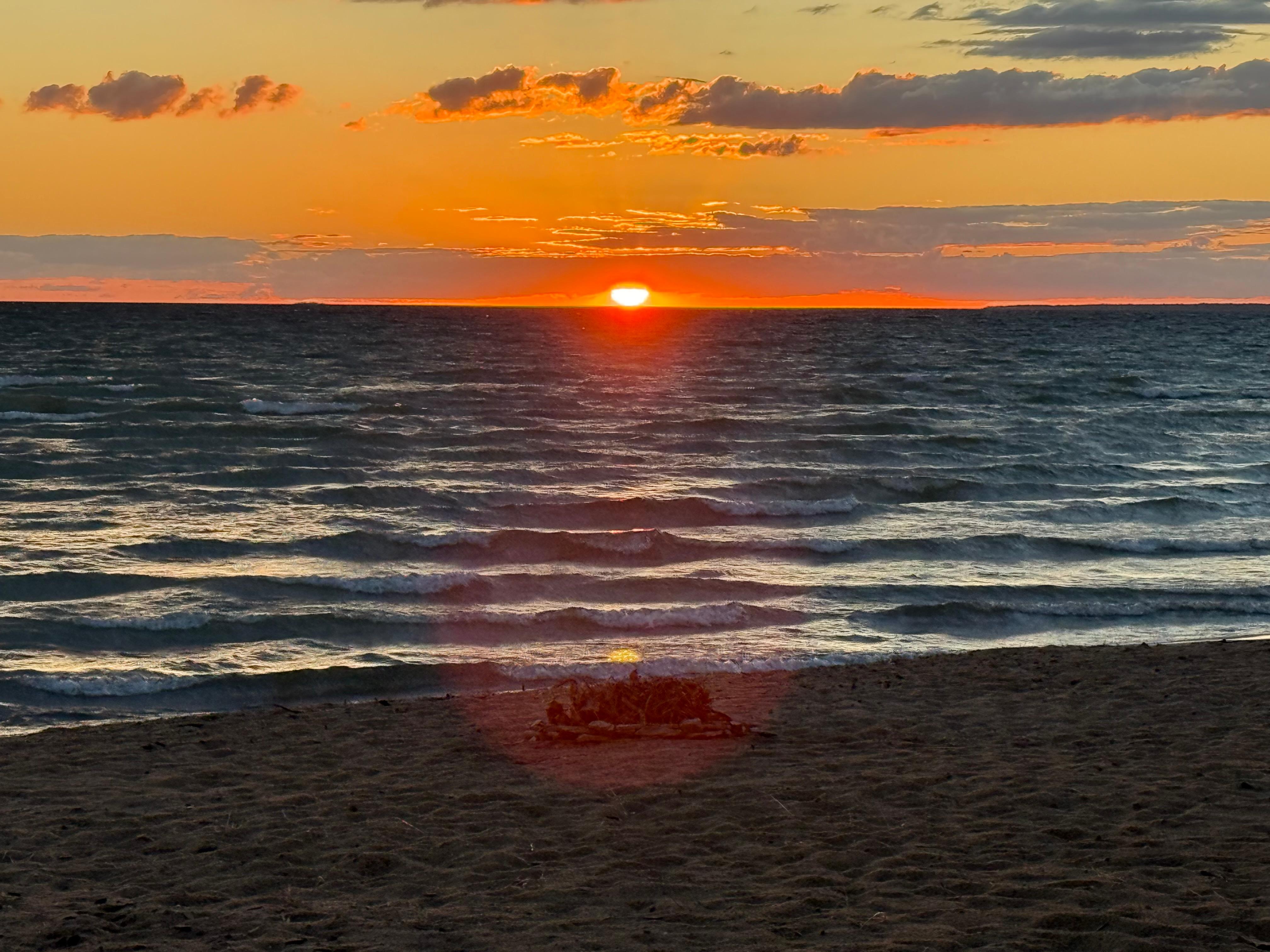 The beach house faces west overlooking Lake Huron with views of the Charity Islands, the shoreline leading to Caseville / Sand Point and spectacular sunsets. A large, shady maple occupies the front yard and provides great cover from the midday sun. Railed steps lead you to the sugar sand beach, lake and fire pit. The rear of the beach house is ringed by lilac's and pines that provide privacy.