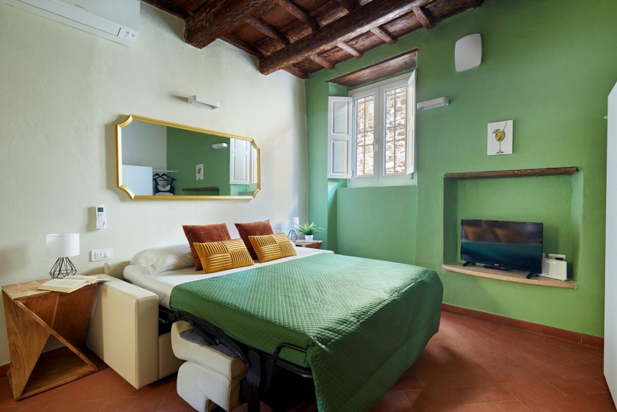 Welcome to Casa Hugo! Newly renovated studio, bright and quiet that offers an enchanting view of the medieval walls of Florence and characterized by a modern decor that recalls the colors of the famous cocktail. We are located in the historic district of San Niccolò where you can immerse yourself in the typical atmosphere of the central area of Florence. The district of San Niccolò has been defined several times as one of the most typical and rich in art districts in the world, including medieval architecture, small restaurants, wine bars and craft shops. You can walk to the Ponte Vecchio, the Uffizi Gallery, the Boboli Gardens and Piazza Pitti as well as go up to Piazzale Michelangelo where you will enjoy one of the most beautiful views of the city. Live a unique experience between history, charm and tranquility in the heart of Florence.