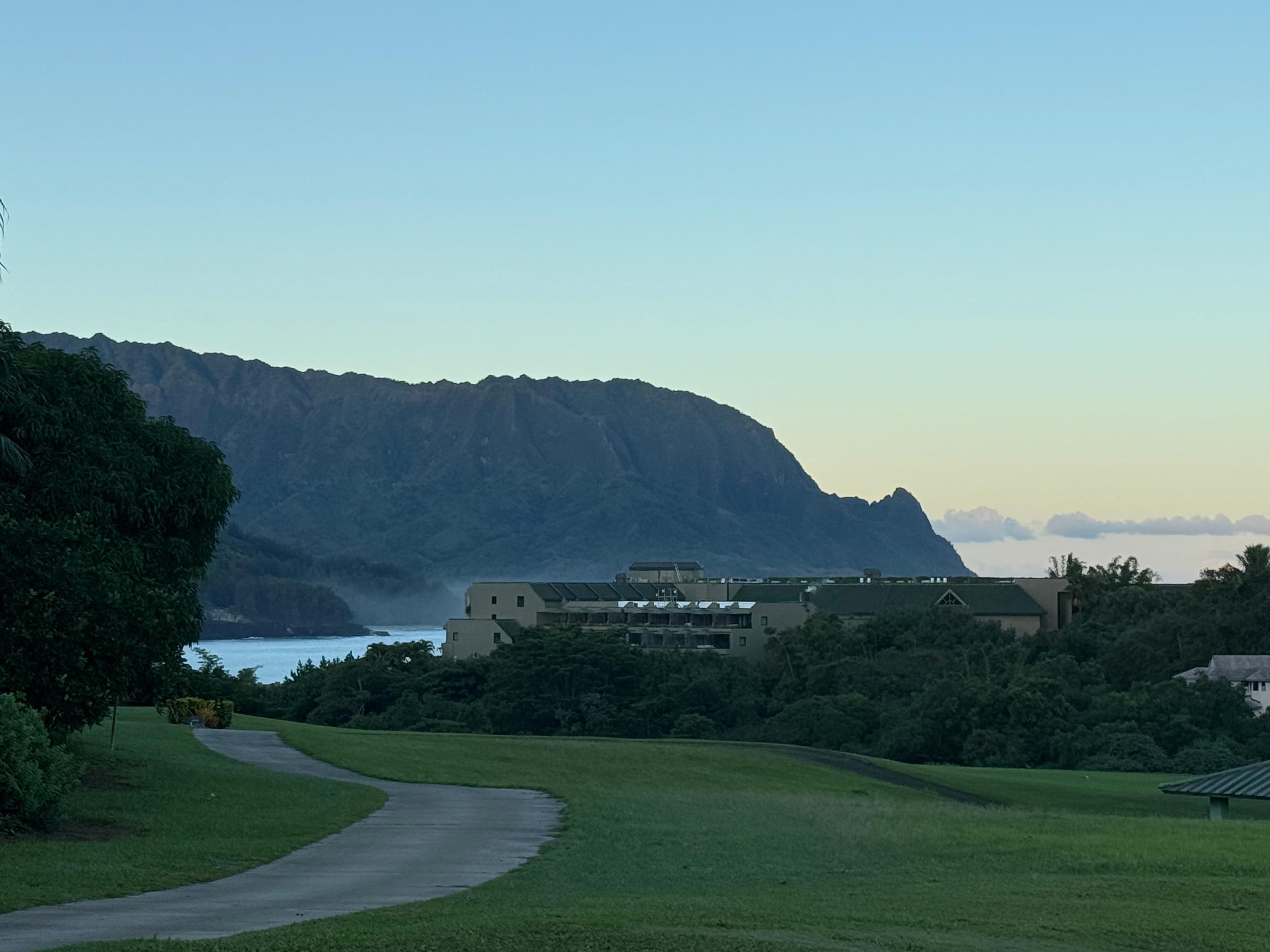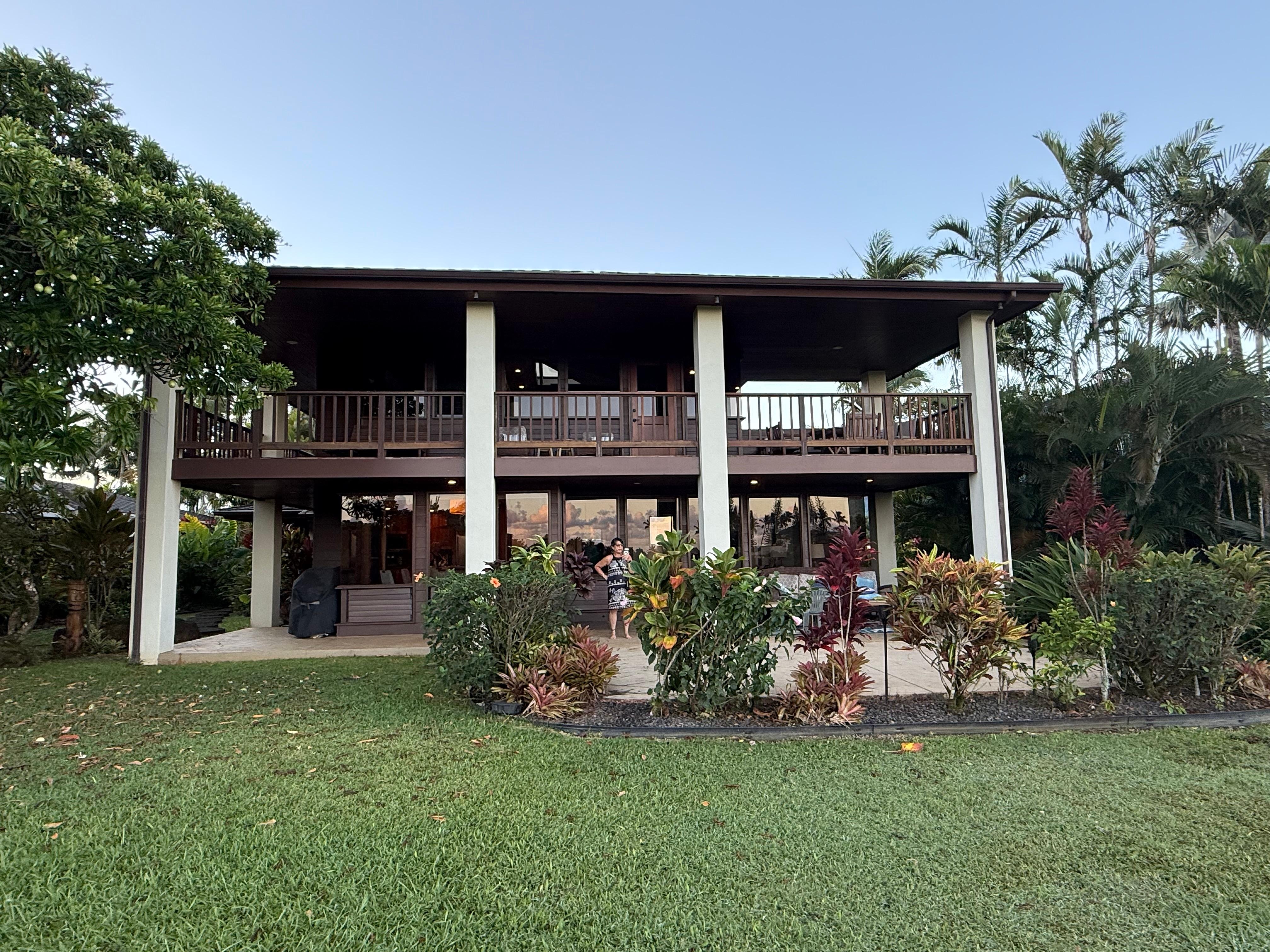 This Fully Air Conditioned, lush upscale Island Style Masterpiece Home offers 4 bedrooms, 4 bathrooms and sits atop the 2nd green of the world renowned Makai Golf Course. Enjoy the expansive lanais and verandas complete with outdoor dining and lounge chairs to enjoy views of the distant ocean, mountains, waterfalls, golf and sunset. In a rare location close to All the Best the North Shore has to offer. Stroll to food, cold drinks & nightly entertainment or, ride bikes to the Princeville Shopping Center, take a dip in Queen's Bath and Snorkel at Hideaways Beach. Back at your lush Tropical home take a nap on one of the 4 private lanais or BBQ fresh fish and take advantage of the Fully Equipped Kitchen to create a culinary delight your family & friends will remember.